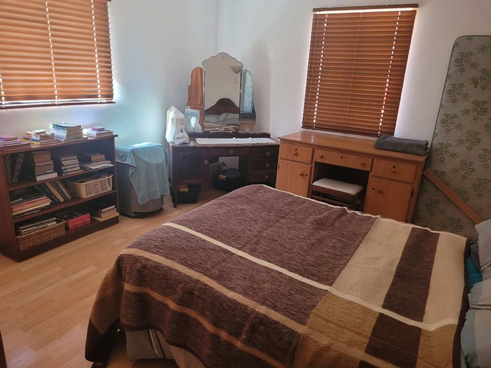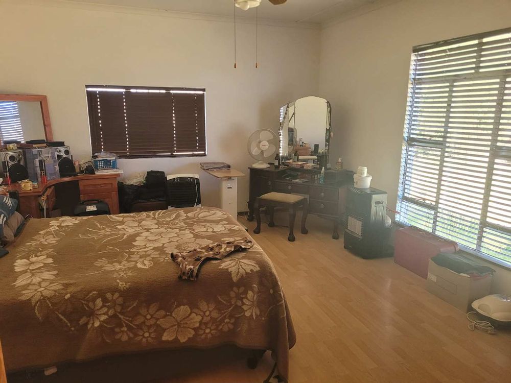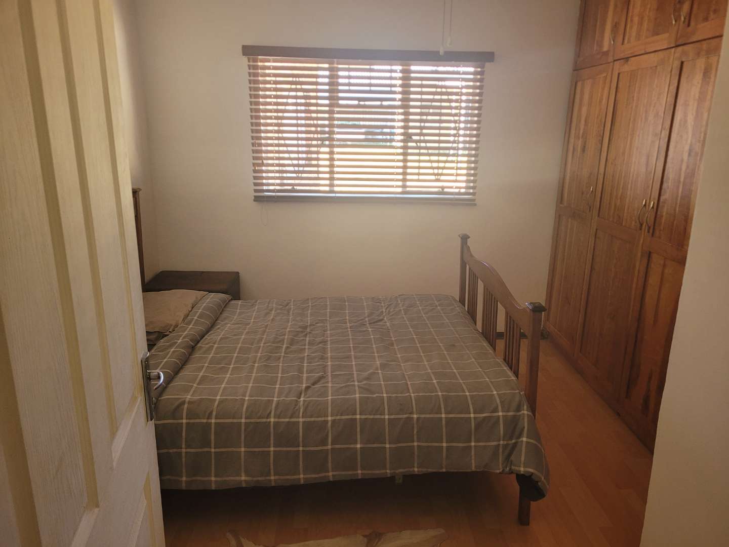 The master bedroom is a spacious retreat, complete with rosewood built-in cupboards and an en suite featuring a shower, basin, and toilet. Laminated flooring adds a touch of warmth and elegance. Adjacent to the kitchen, a beautiful sunny living area invites relaxation and comfort.