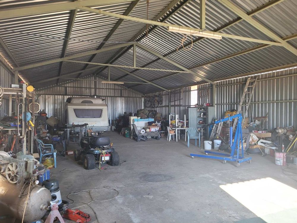An impressive 20x10 steel shed with a concrete floor and electricity provides ample space for storage or workshop activities. Additionally, there is an ablution area that is three-quarters completed, presenting an ideal opportunity to develop a campsite or truck stop, given the ample parking space for cars or large trucks.