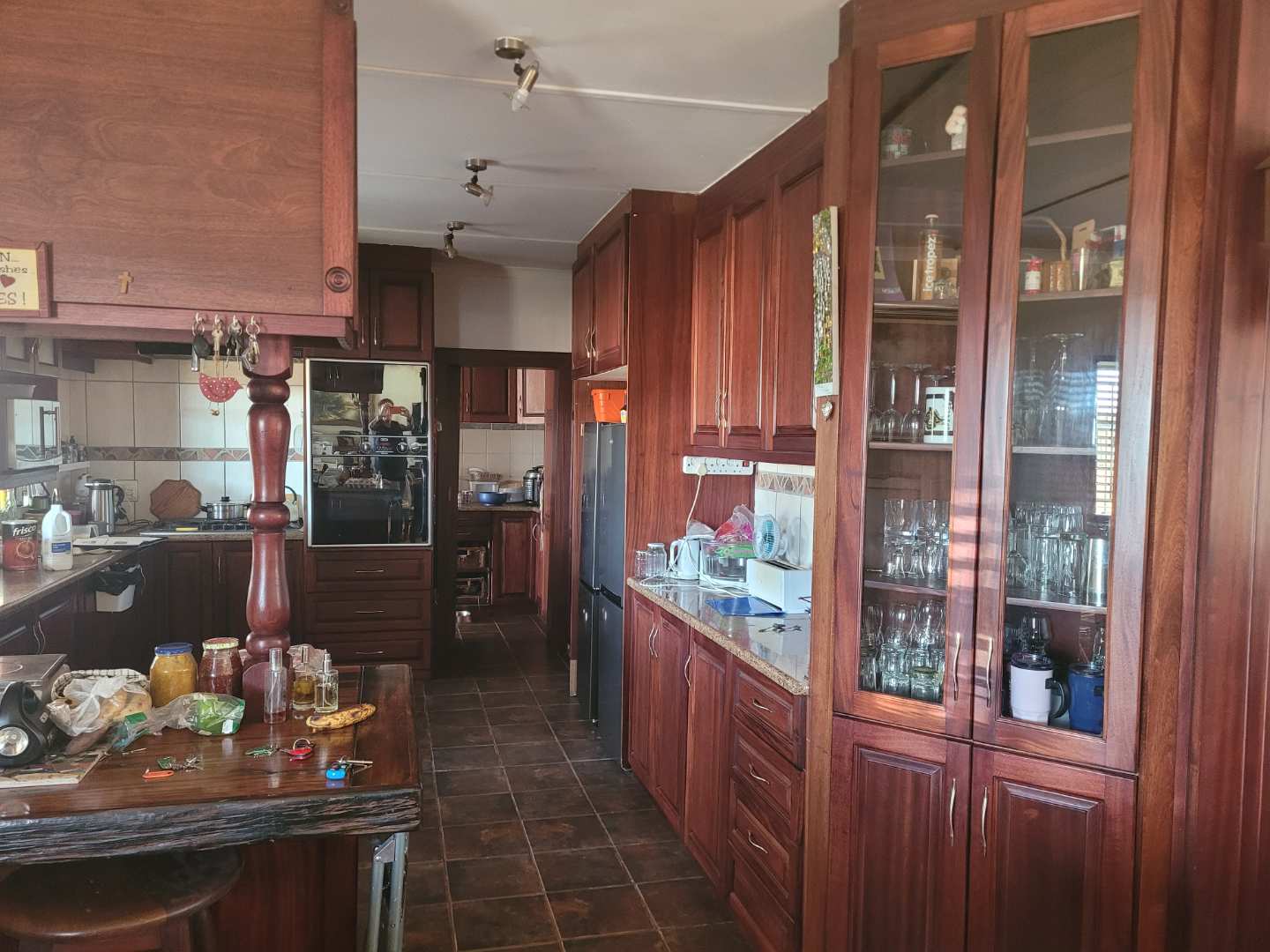 Step inside to discover a thoughtfully designed open-plan lounge and dining room, featuring elegant laminated floors. The dining room boasts an indoor braai, perfect for entertaining guests all year round. The kitchen is a chef’s delight, fully equipped with an eye-level oven and hob. Rosewood kitchen cupboards provide ample packing space, while the slato floors ensure effortless cleaning.