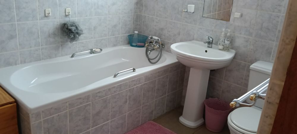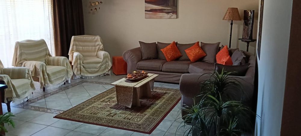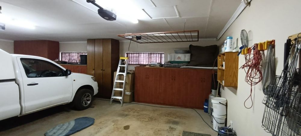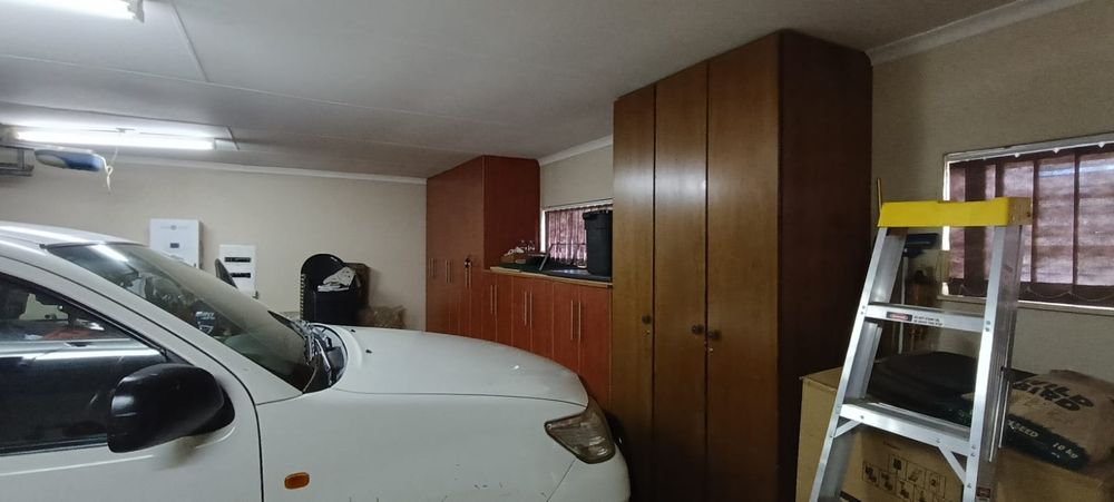 The main house is an epitome of elegance and security, surrounded by devilsfork fencing and equipped with robust safety gates and burglar-proof installations. Solar panels have been expertly fitted to provide sustainable electricity to the entire home, ensuring energy efficiency. The property includes three garages with remote-controlled wooden doors, providing ample space and convenience for your vehicles.