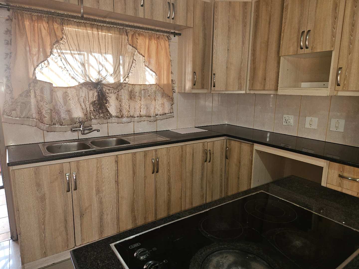 The heart of the home is a spacious lounge and living area, ideal for relaxation and entertaining. The open-plan kitchen seamlessly integrates with the dining area, creating a welcoming space for family meals and gatherings. The kitchen is equipped with built-in cupboards, offering plenty of storage and functionality.