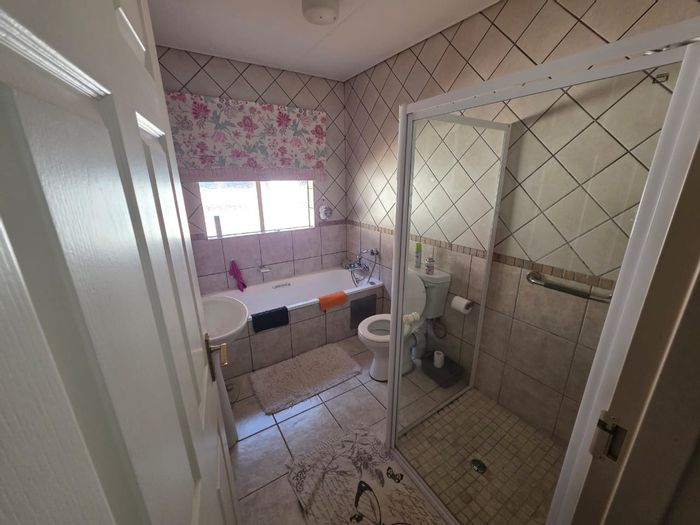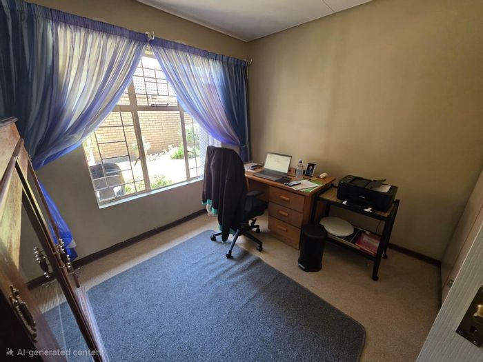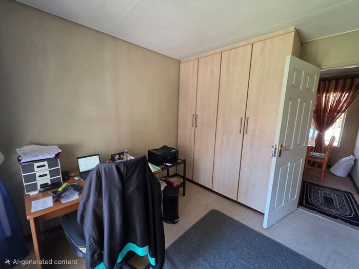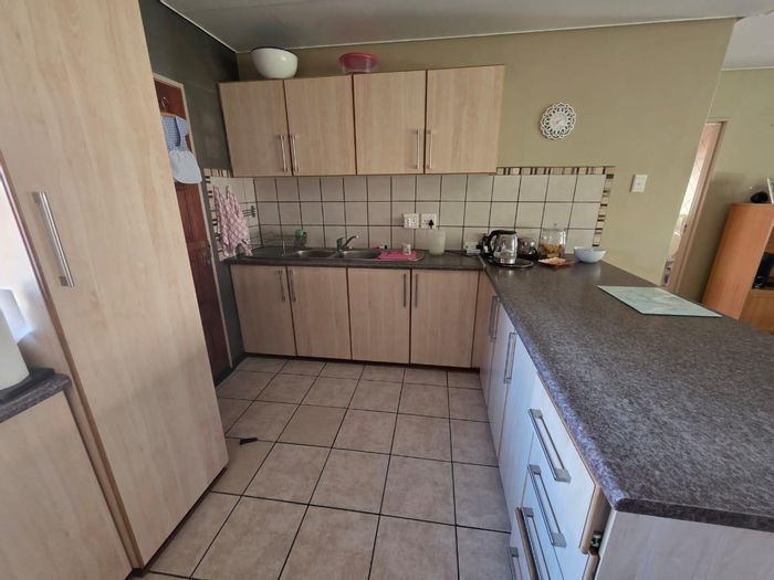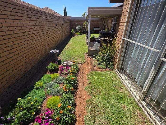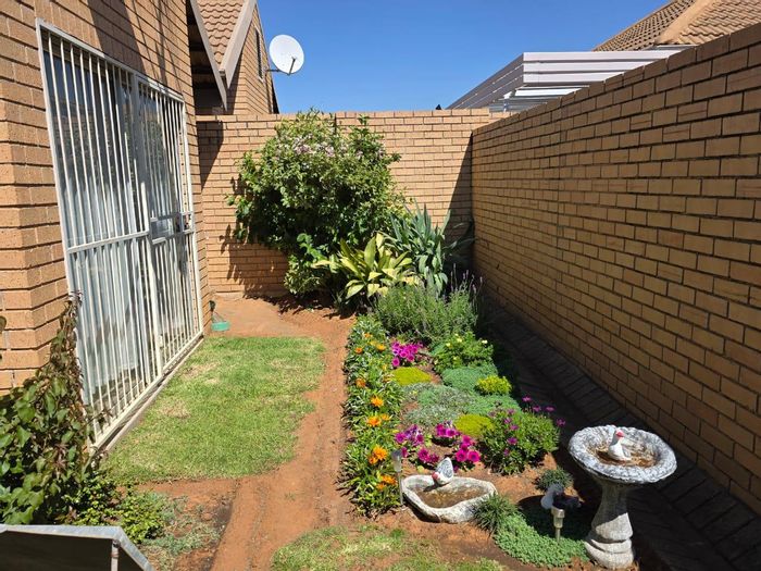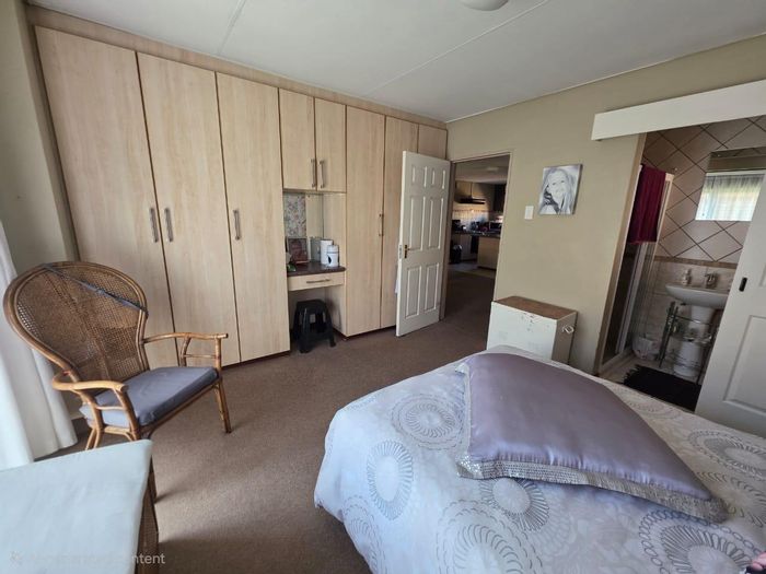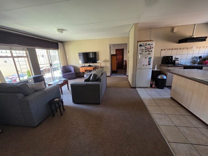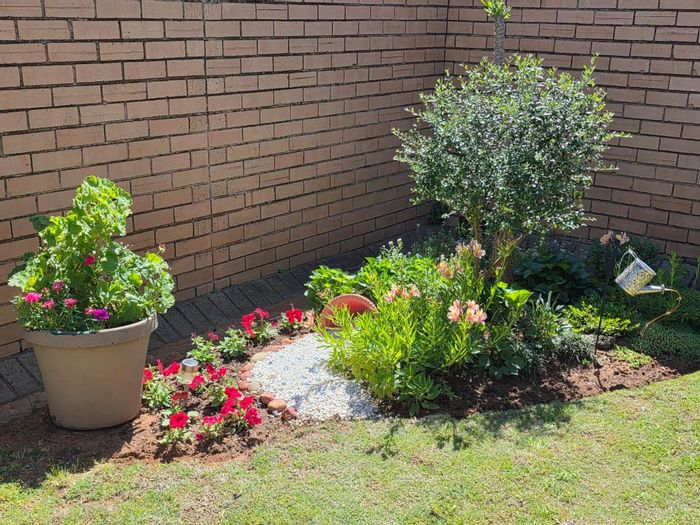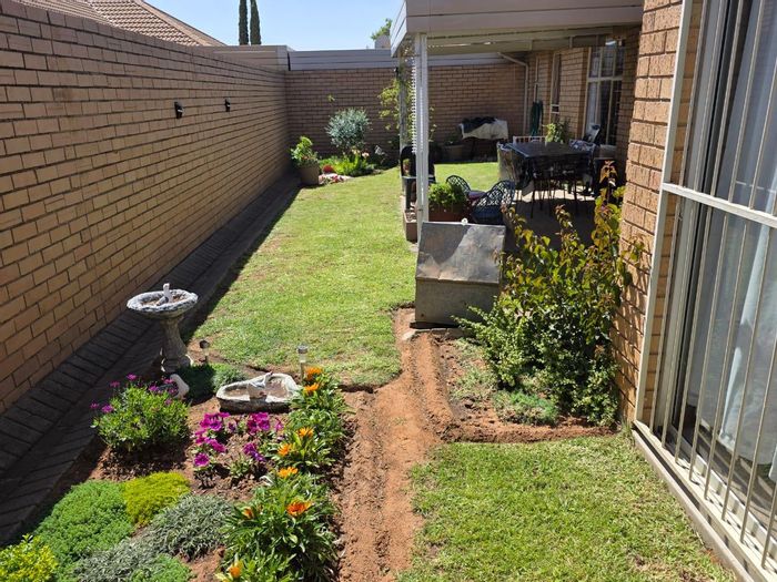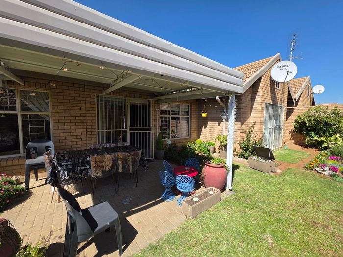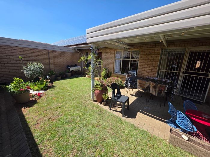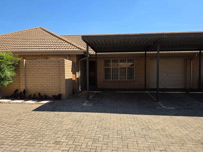 Peaceful suburban living in Bloemfontein with shops, schools and transport nearby — private backyard for kids and pets, two bedrooms, one bathroom, single garage plus four covered parking.