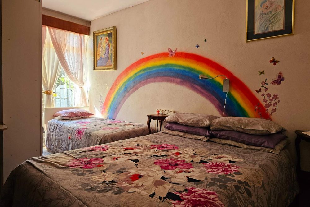 Meanwhile, the fifth bedroom stands out with its warm wooden flooring and sliding door leading to a balcony. With its own ensuite bathroom, this private sanctuary offers a tranquil retreat. The sixth bedroom is a unique space equipped with a kitchen and ample room for a dining table. It presents an incredible opportunity for customization and can be transformed according to your personal vision.
