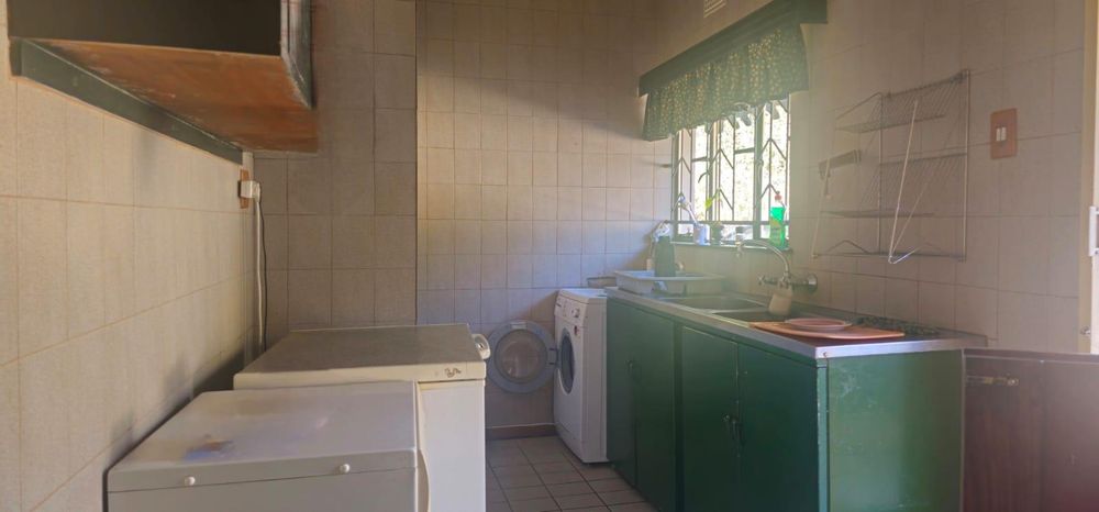 The kitchen is a chef’s dream, equipped with abundant cupboard space, a separate laundry area, and a scullery. Convenience is further enhanced with two well-appointed bathrooms and a separate guest toilet.