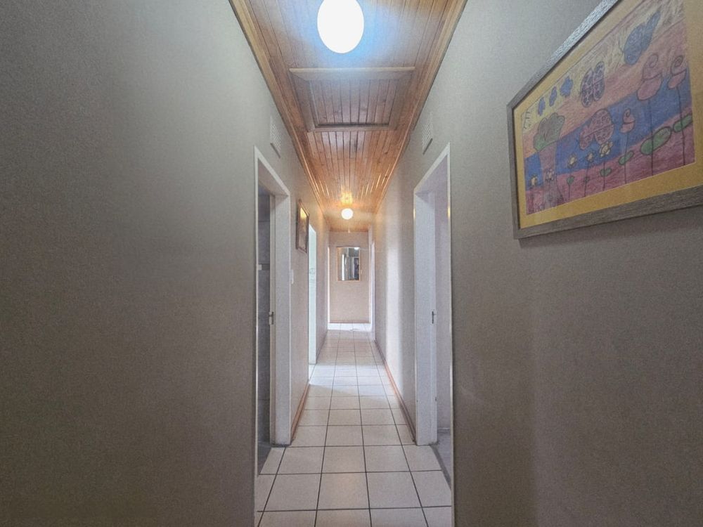 The home also includes a dedicated study or home office, perfect for remote work or extra storage. The open-plan dining and living area creates a functional space for family life, and the kitchen is equipped with built-in cupboards, a double eye-level oven, electric hob, pantry, and plumbing points for both a dishwasher and washing machine.