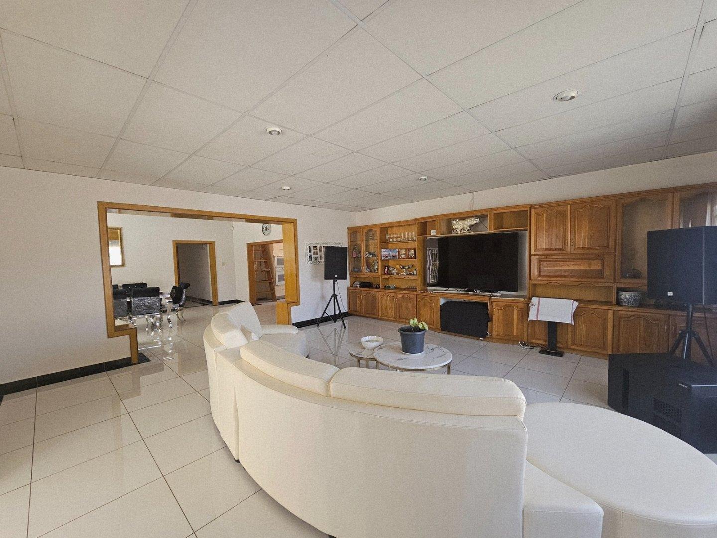 The kitchen is a highlight, equipped with numerous built-in cupboards, a dedicated laundry area, and a pantry. Its functional layout is ideal for both everyday living and entertaining. Adjacent to the kitchen is an expansive dining room area, perfect for hosting family meals and gatherings. The living room is bright and inviting, while a second cozy living room area offers a sunny retreat for relaxation.