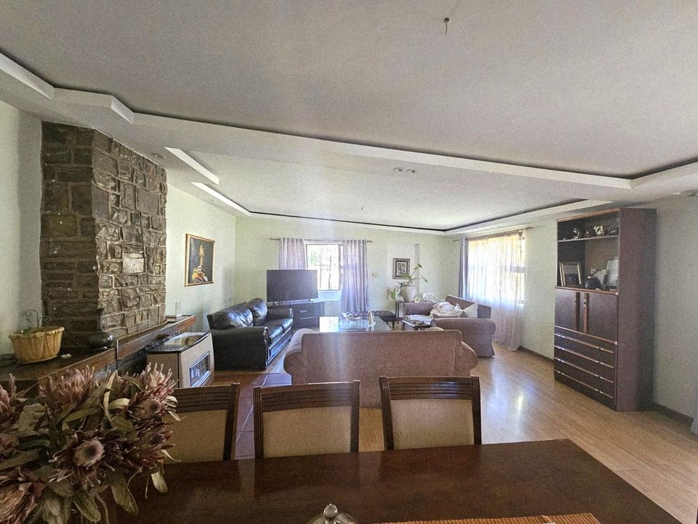 Outside, the expansive garden beckons with a swimming pool that, with some TLC, could become a stunning focal point. A tiled patio leads to a lapa equipped with a built-in braai, making it the perfect setting for relaxed outdoor entertaining with family and friends.