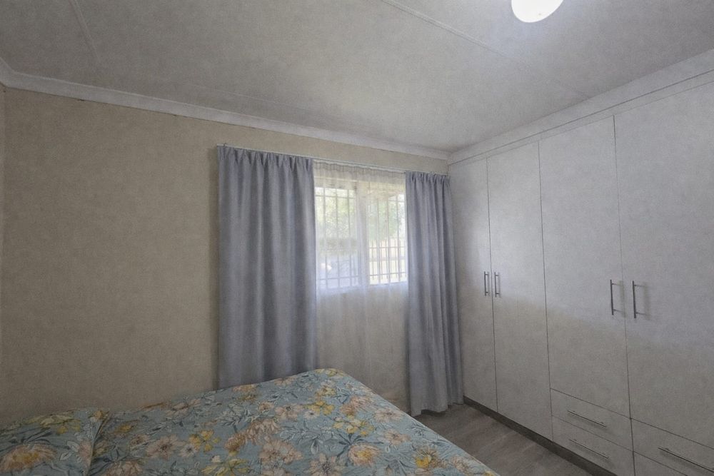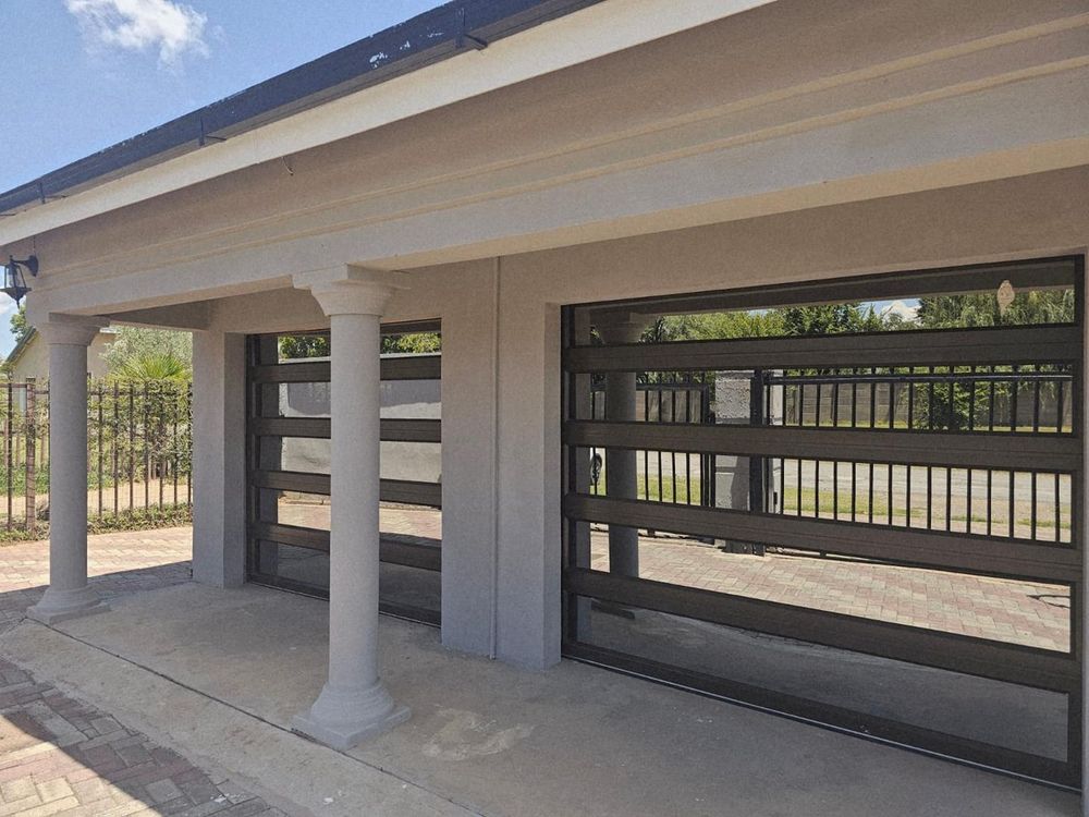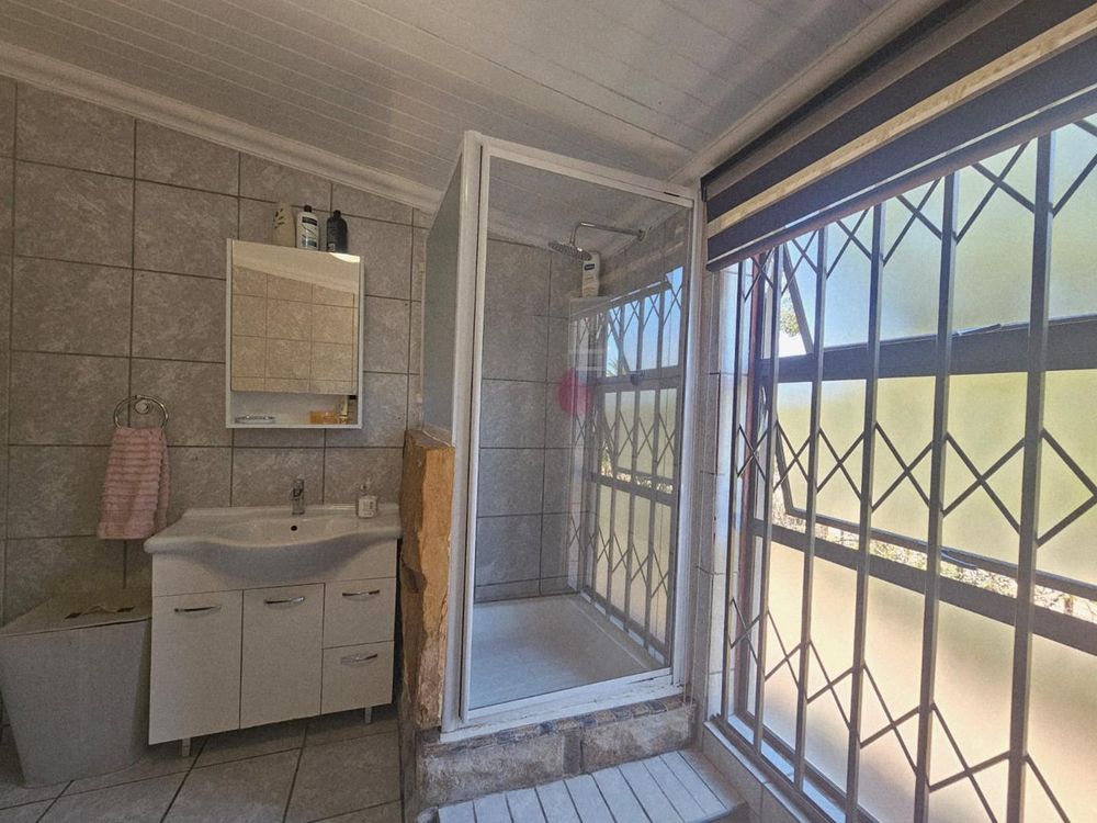 The spacious main house features three well-appointed bedrooms, each equipped with built-in cupboards for ample storage. The master suite boasts an ensuite bathroom for added privacy and convenience, while a second modern bathroom services the remaining bedrooms. The large lounge area is perfect for family gatherings and relaxation, complete with air conditioning to ensure comfort throughout the year. A very modern kitchen awaits the culinary enthusiast, offering ample cupboard space and a separate pantry for all your storage needs. The property also includes a double garage for secure parking and an outside toilet for added convenience.
