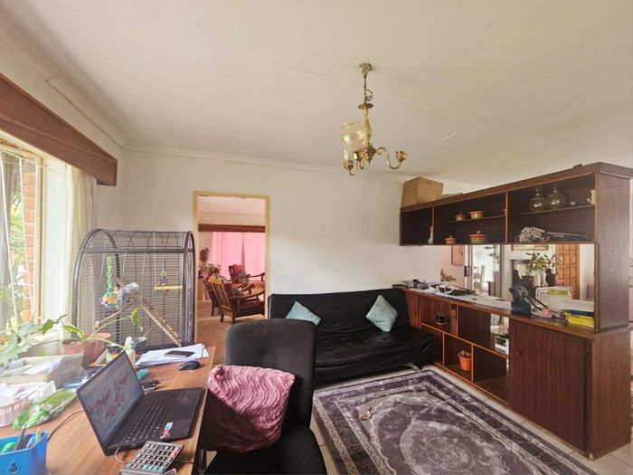 Three bedrooms, one bathroom home with four garages, on 1608 m² land. Includes a flatlet for rental income.