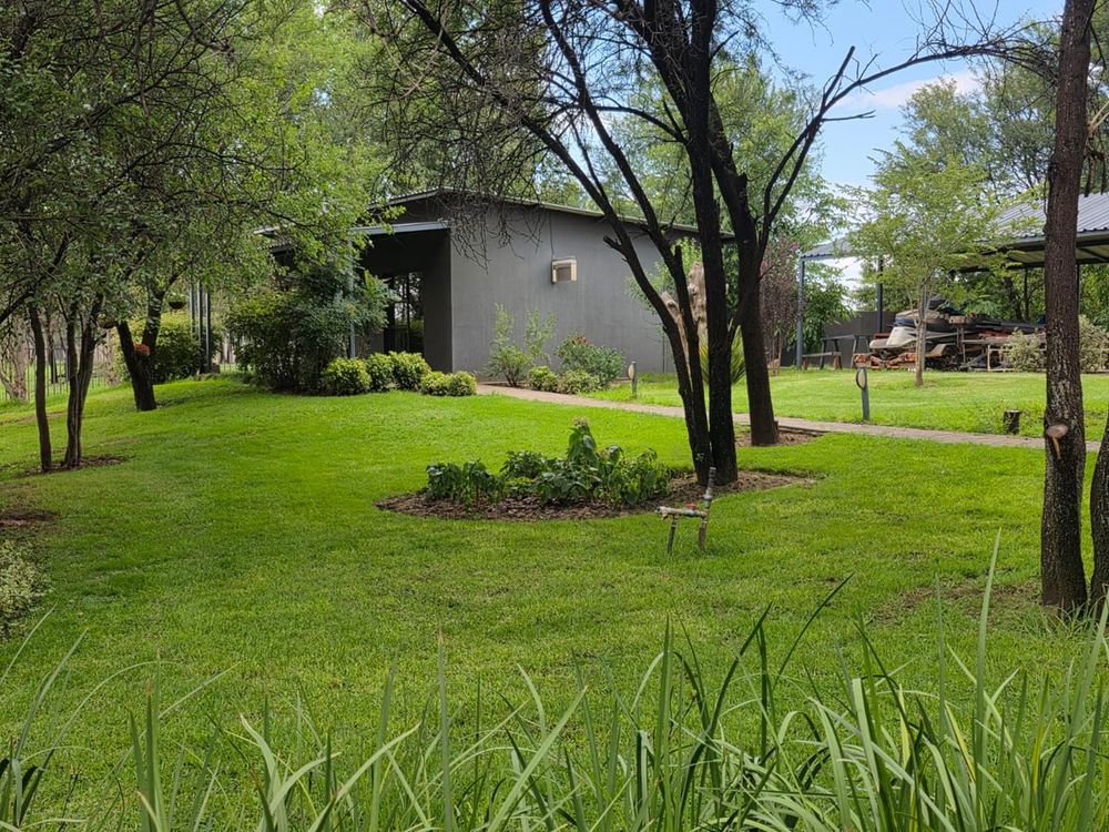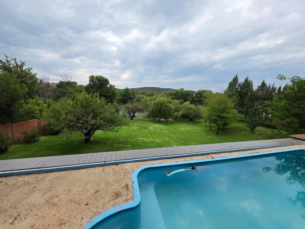 - A patio complete with a swimming pool overlooking the lush garden and Modder River