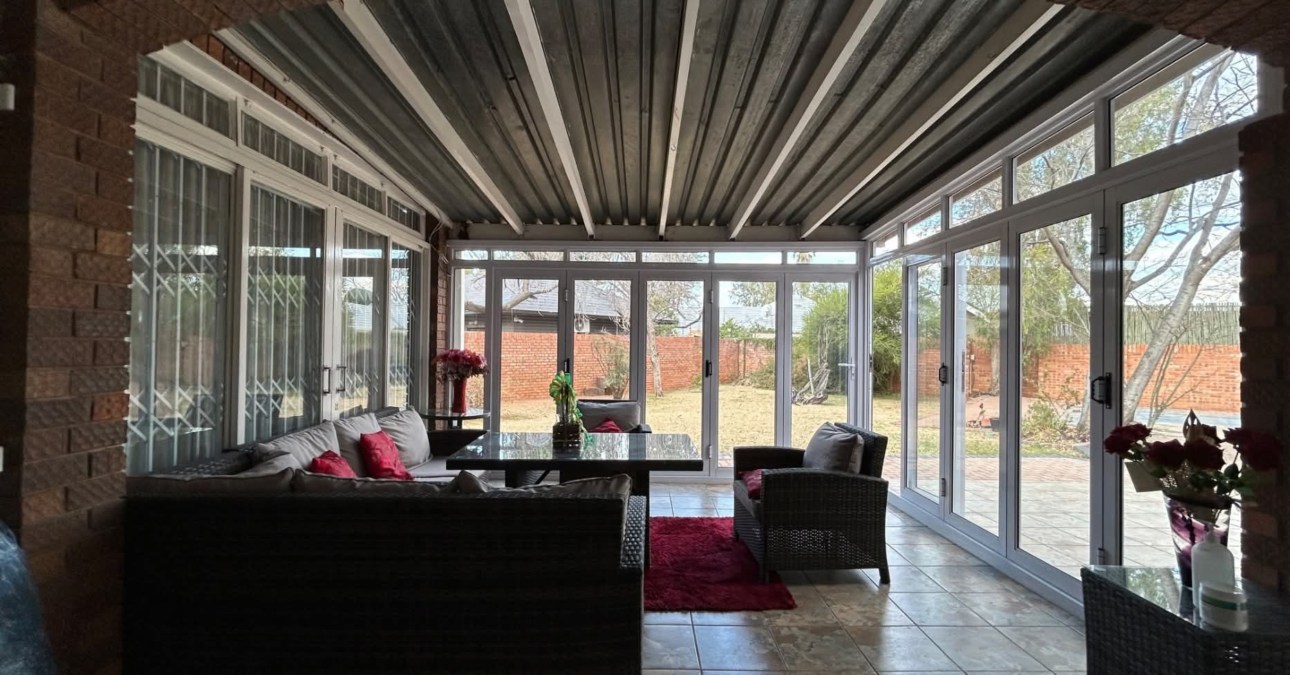 Outdoor living is equally inviting with a sparkling swimming pool and a meticulously maintained garden complete with an irrigation system, borehole, and Jo-Jo tank. Parking is never an issue with a double garage, single garage, and four secure parking spaces available.