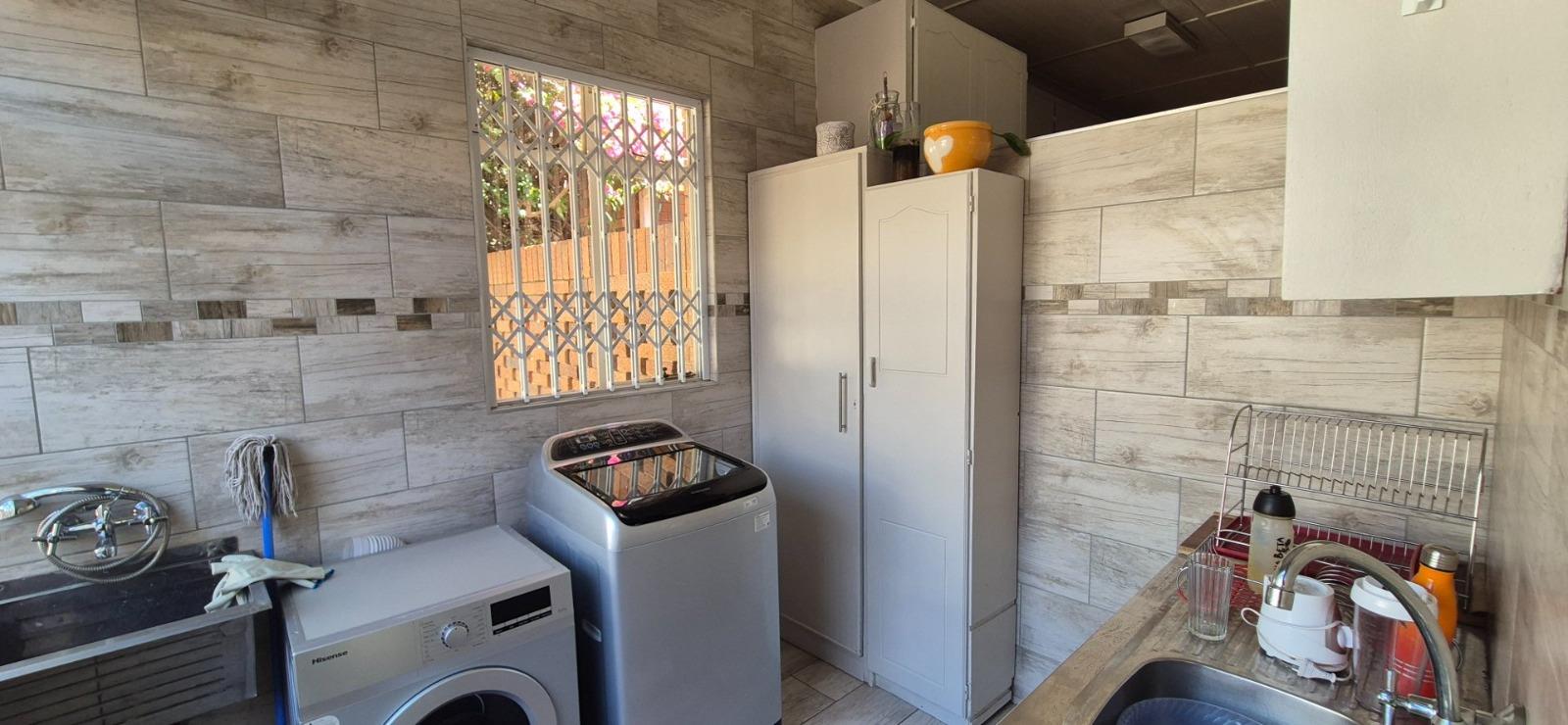 Safety and security are paramount in this home. It is fully walled and equipped with an alarm system, burglar bars, Trellidoors, an electric gate, outdoor beams at the flatlet, and a water cooler for added comfort.