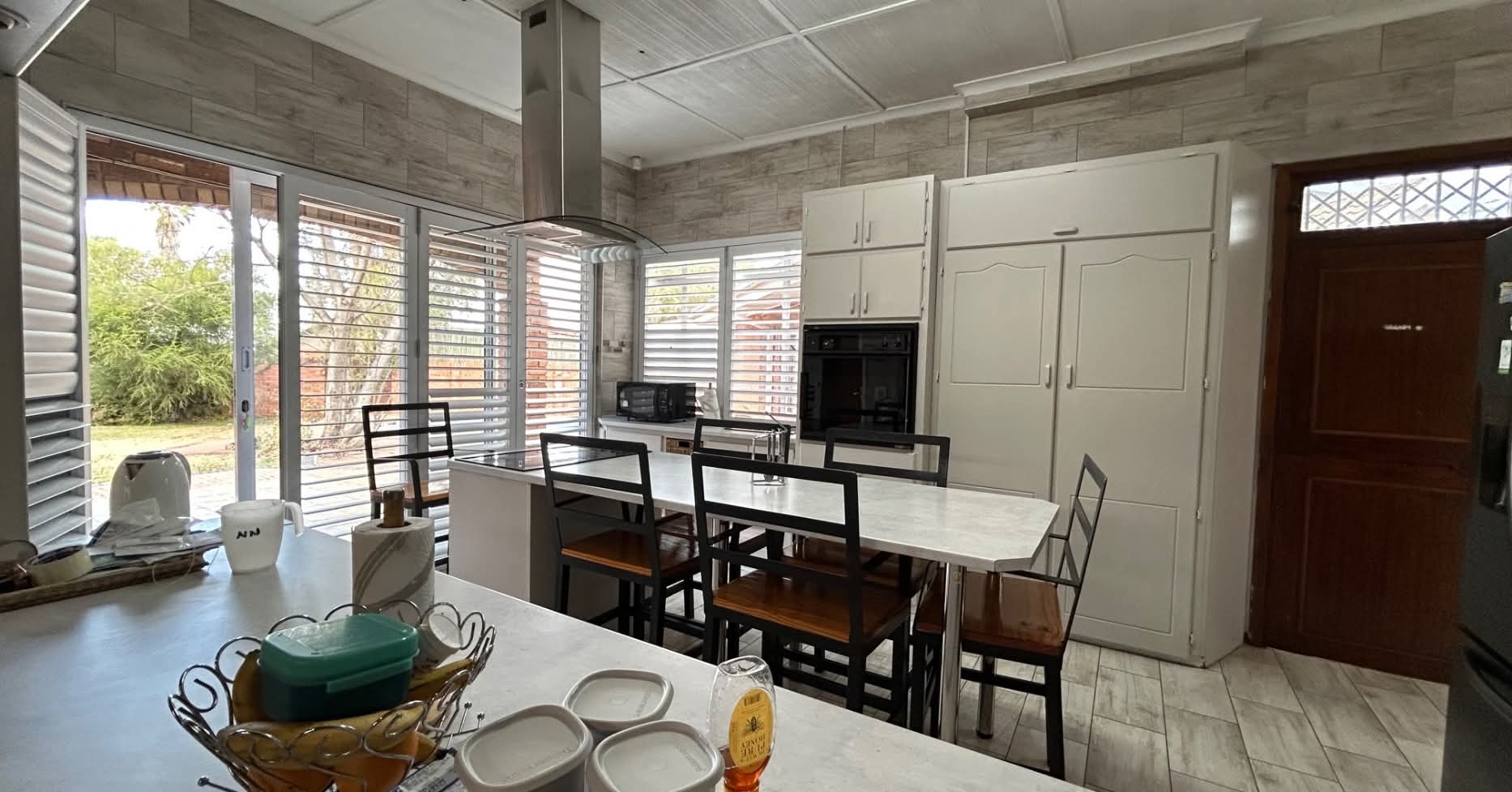 The main house is thoughtfully designed with two family rooms, a formal living area, and a dedicated dining room, making it ideal for relaxed family living and elegant entertaining. The primary kitchen is a chef’s delight, featuring beautifully fitted built-in cupboards, a cozy breakfast nook, a center island, eye-level oven and hob, extractor fan, and a gas geyser. For added convenience, a tumble dryer is included. A second open-plan kitchen accompanies the flatlet, providing an excellent opportunity for dual living or generating rental income.