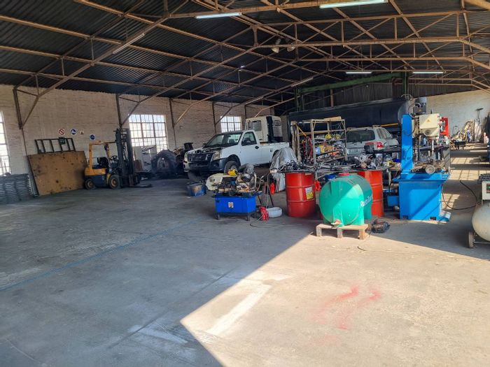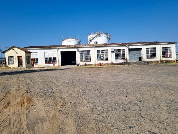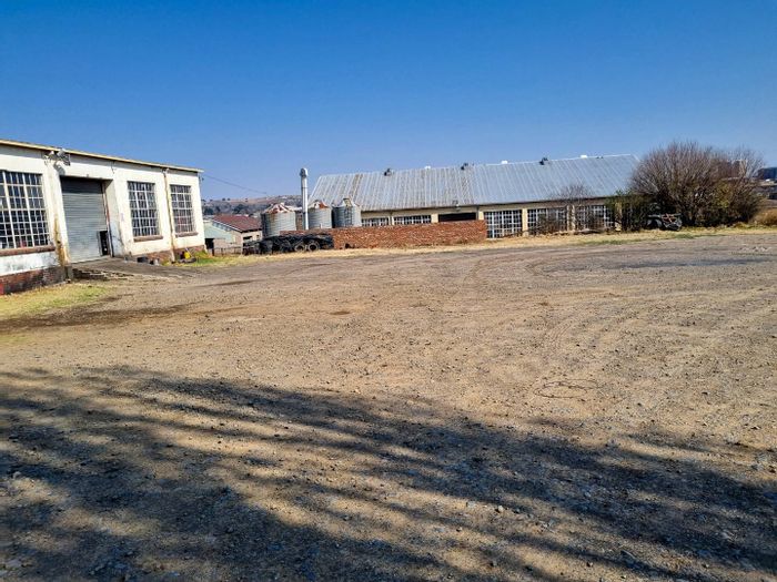 Strategic industrial site adjacent to tar road near Bohlokong Township, dual high-roof warehouses (8m/6m), 4000sqm truck parking, offices, ablution, CCTV-secured perimeter.