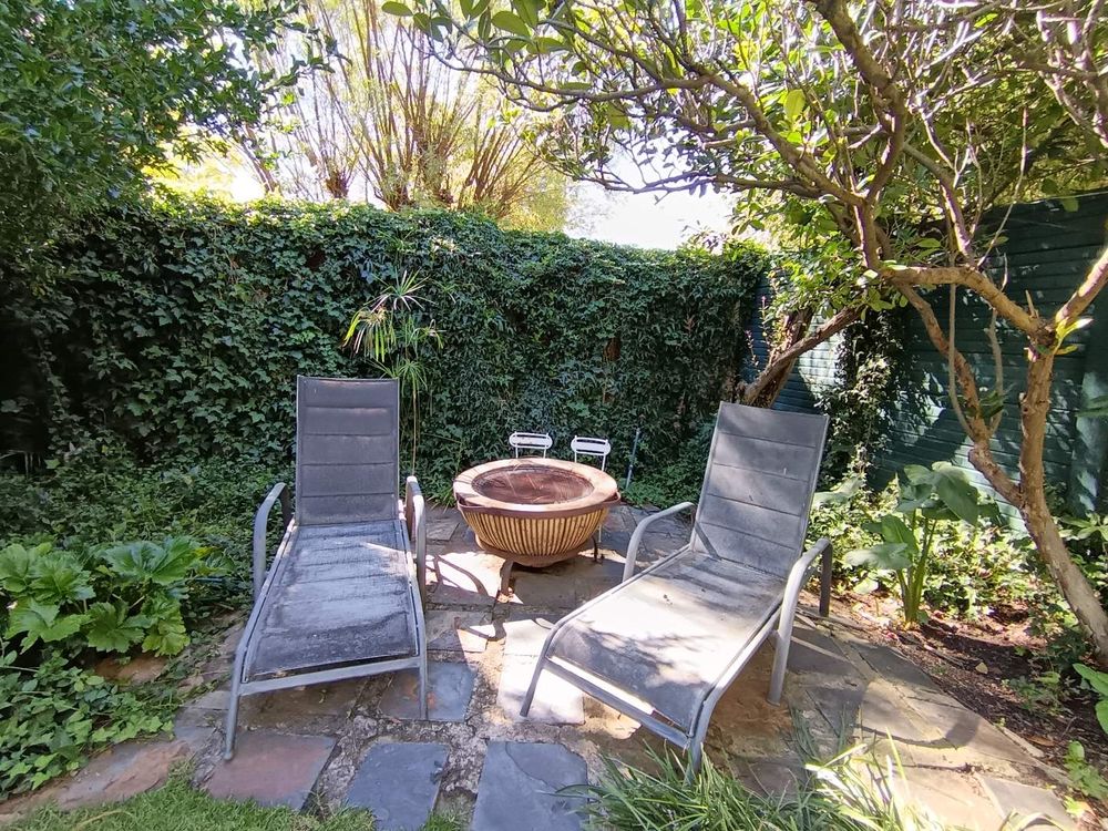 Outside, you’ll find a large covered patio complete with a pizza oven and built-in braai, overlooking a sparkling pool set within a lush, established garden filled with birdlife.