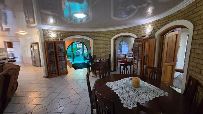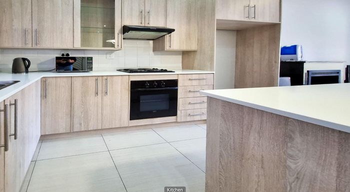 Entertainer's modern townhouse in an upmarket neighborhood near the Botanical Gardens and Northridge Mall, featuring sunlit open-plan living, built-in braai and double automated garage; three beds, two baths.