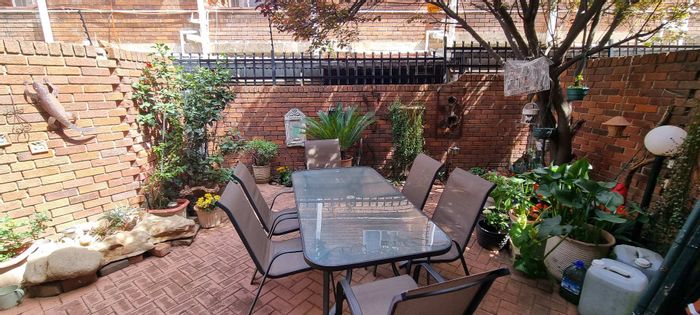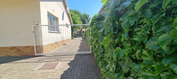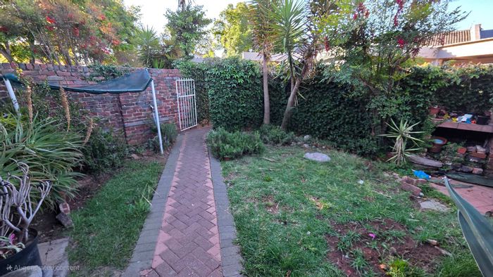Peaceful lock-up-and-go townhouse in sought-after Westdene, part of a secure seven-unit complex with private garden and open-plan living, upstairs main bedroom with aircon — 2 beds, 1.5 baths, garage.
