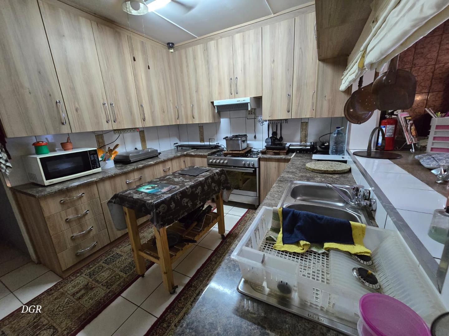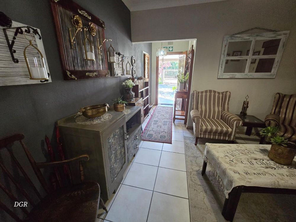 Designed with both relaxation and entertainment in mind, this guesthouse features a sparkling swimming pool, a beautifully landscaped garden, a lapa, and a built-in braai area. These amenities create an ideal setting for guests to unwind or for hosting memorable gatherings. As you enter, be welcomed by an elegant entrance hall that leads to an expansive open-plan living area. The sleek, well-equipped kitchen with ample storage makes meal preparation effortless and enjoyable.