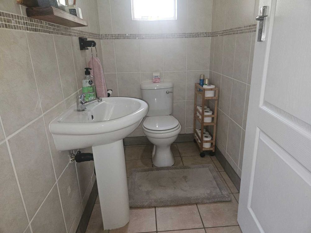 Designed for entertainment, the covered patio includes a built-in braai, perfect for hosting gatherings with family and friends. The immaculate garden is a testament to meticulous care, featuring an efficient irrigation system to maintain its lush appearance. A 2,400L JoJo tank further supports water usage, ensuring sustainability. For added convenience, there is an outside toilet available.