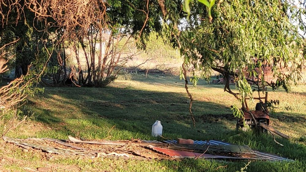 The property also boasts a swimming pool, which requires some refurbishment but could become a stunning feature with the right care. Situated in a safe neighborhood with Farm Watch in the area, this property offers peace of mind and security. With prepaid water and electricity, managing utilities is straightforward.