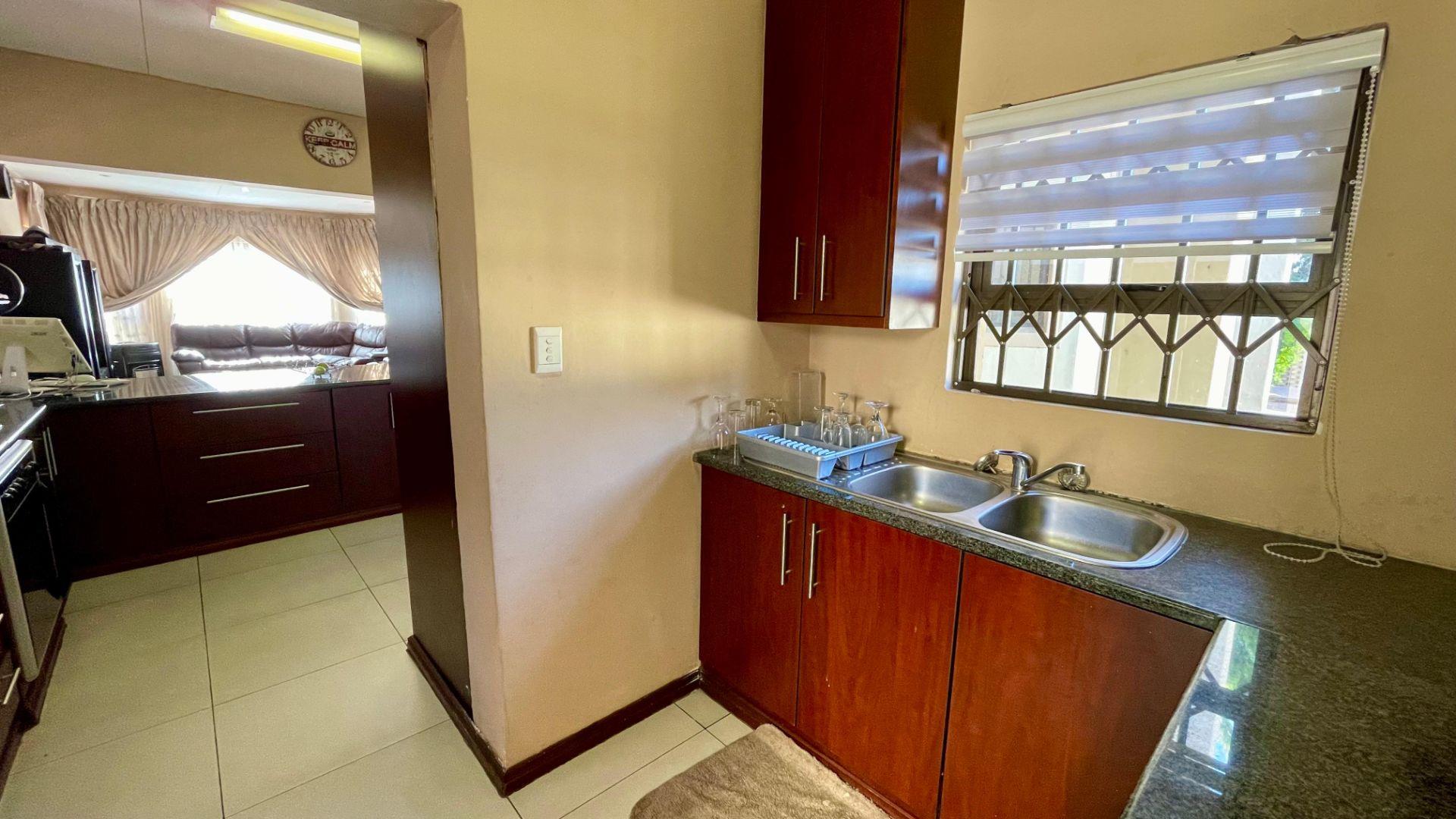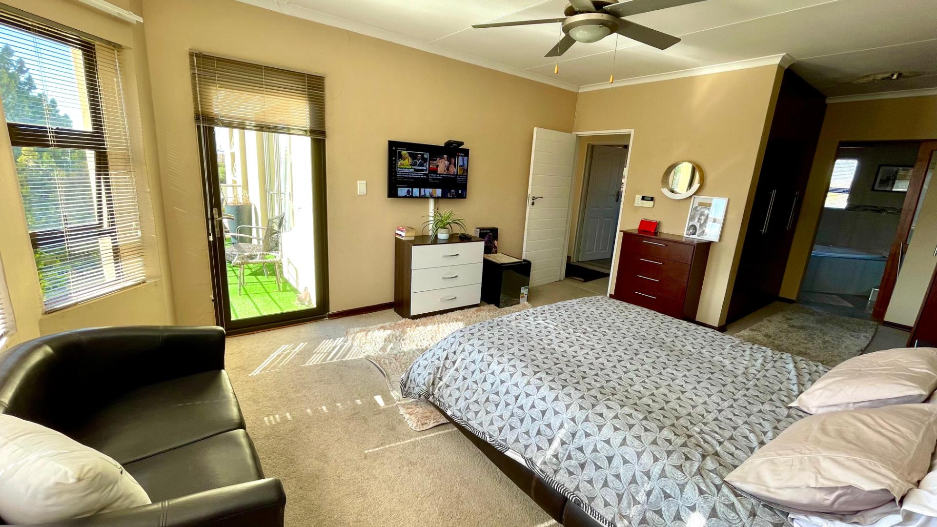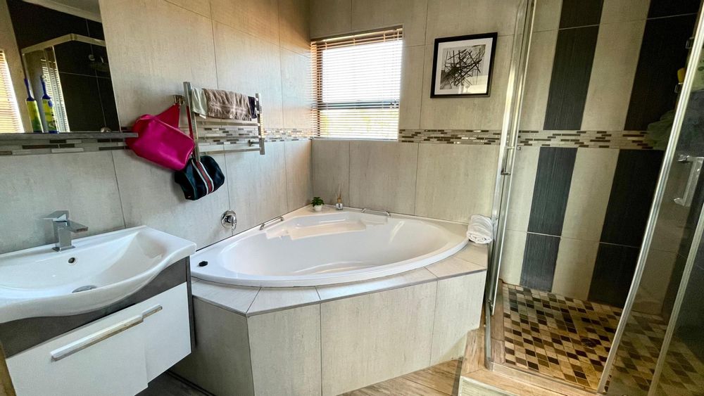 Step outside to the tranquil outdoor oasis featuring a braai lapa, swimming pool, and a beautiful garden, ideal for creating lasting memories with family and friends. The property also boasts a double automated garage, a double carport, and secure parking for 3 vehicles, ensuring ample space for all your needs.