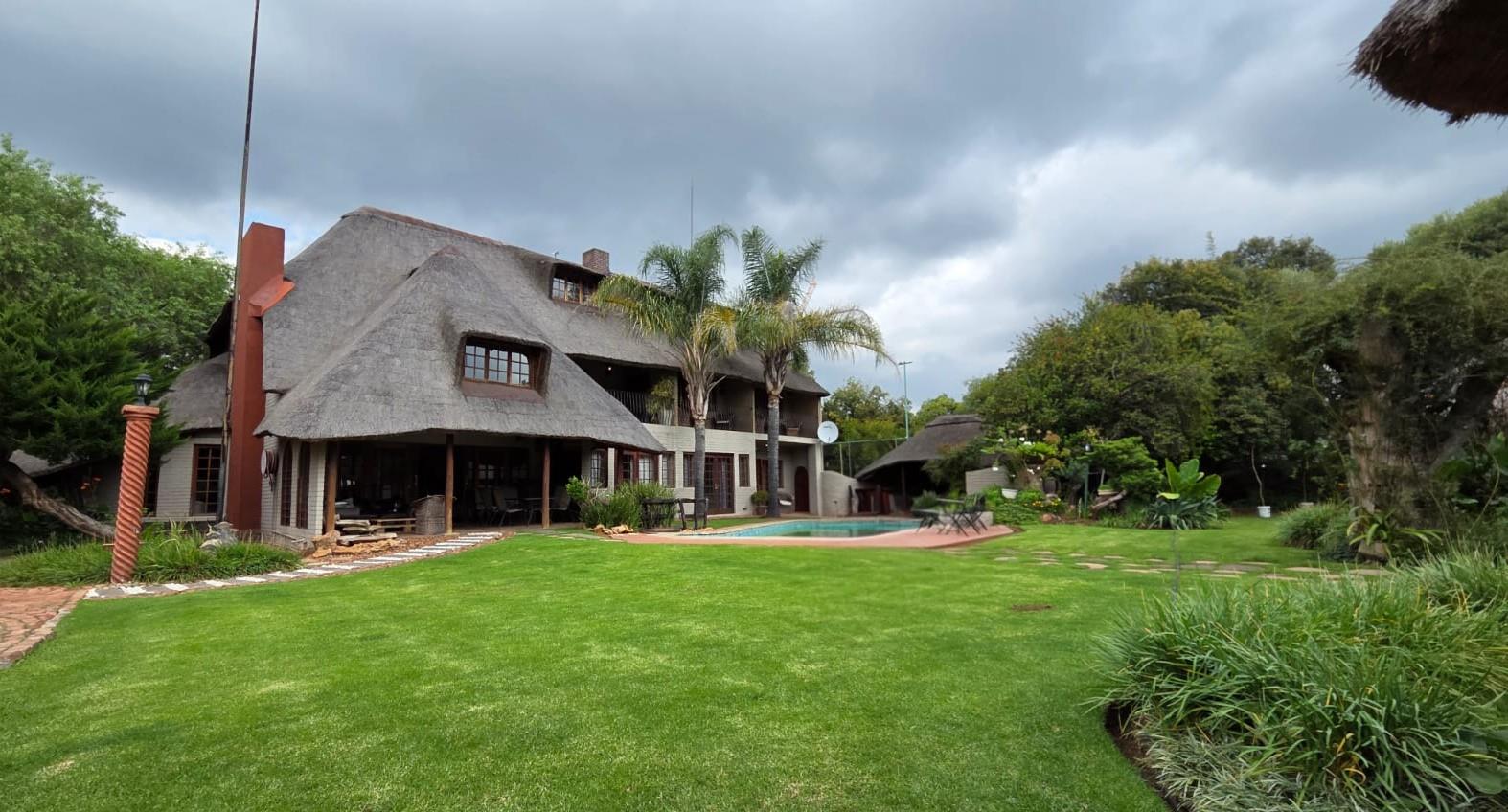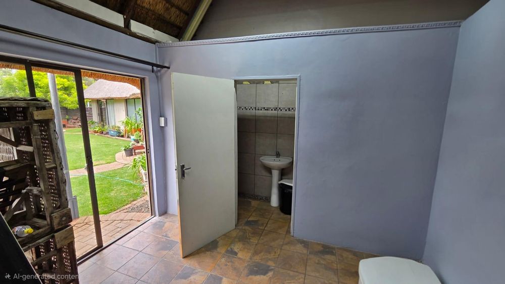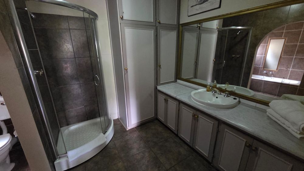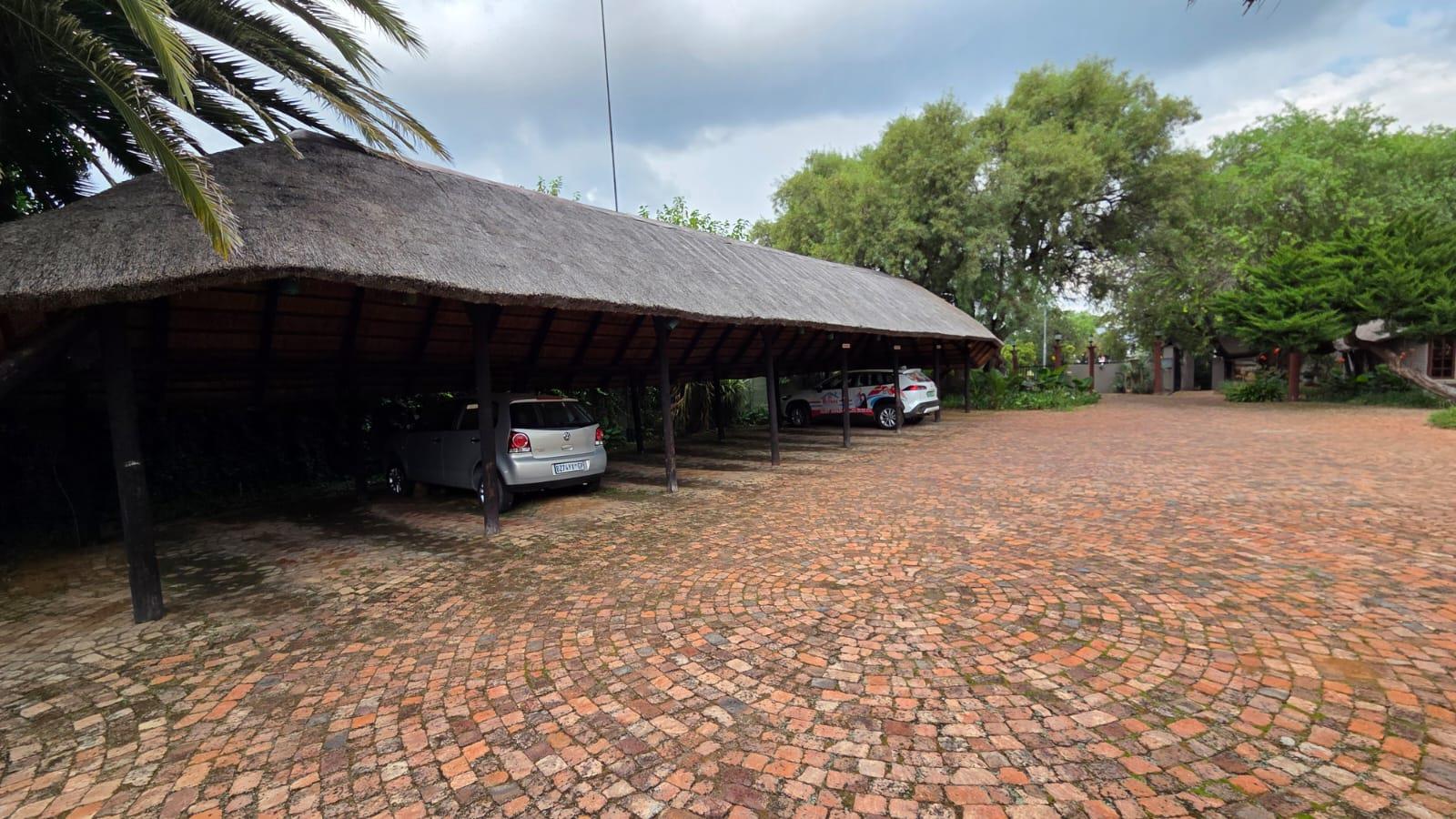 The outdoor area is designed for relaxation and entertainment, featuring a larger lapa with braai facilities adjacent to the swimming pool and a smaller lapa with braai facilities behind the cottage. Ample parking is available with nine shaded parking spaces and an additional two spaces, ensuring convenience for guests and residents alike.