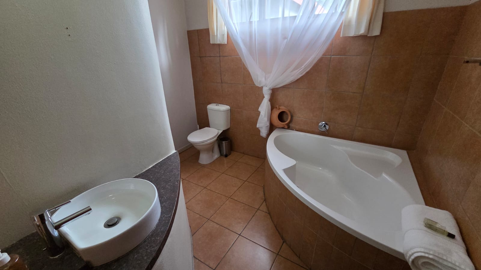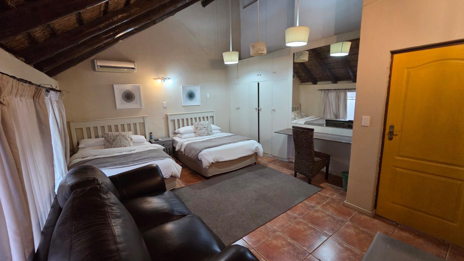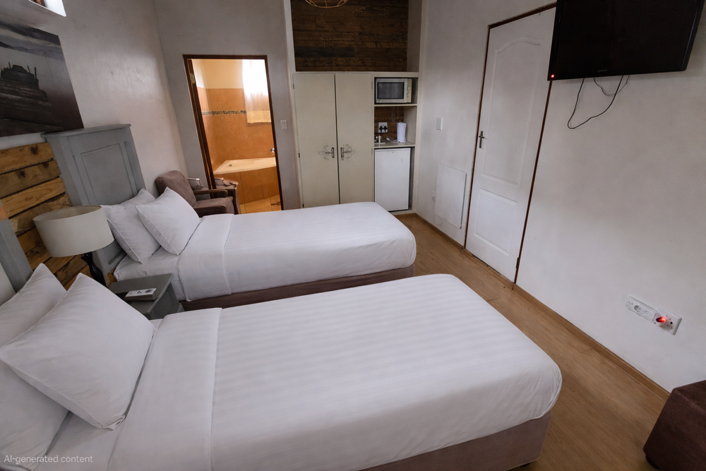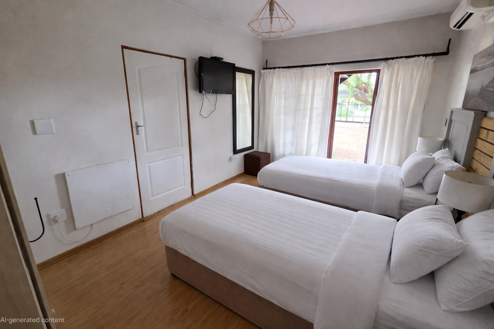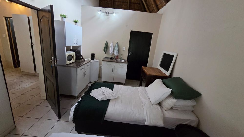 The guesthouse boasts fourteen spacious, fully furnished bedrooms, each with an en-suite bathroom. Some of the rooms feature a balcony, while others seamlessly extend into the beautifully maintained natural garden. Guests will appreciate modern conveniences such as Wi-Fi, a fridge, microwave ovens, and air conditioning in every room.