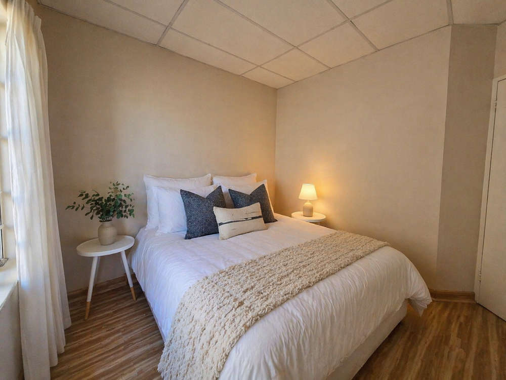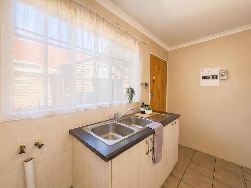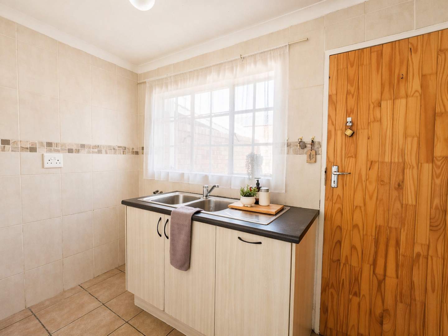 Located in a sought-after retirement village the unit has 2 bedrooms and a bathroom with shower, toilet, and basin. Both bedrooms have laminated floors and built-in cupboards and are able to accommodate a double bed. The spacious lounge / dining room has a beautiful sunny bay window and is open plan to the kitchen, both with laminated floors. The kitchen has granite tops, sufficient cupboard space, electric hob, undercounter oven, space for a fridge / freezer and a door leading to the paved courtyard that has a washing line and a Wendy house. The single garage has been converted to a second living room with a ceiling fan and tiled floor, leading to the separate scullery. The scullery has double basin, built in cupboards and space for a washing machine, also with door leading to the rear courtyard.