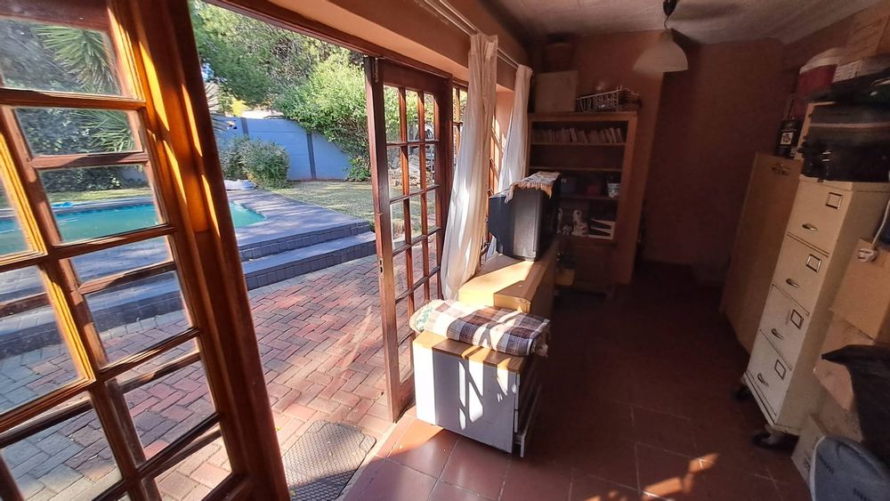 Also leading from the corridor is a room to the east which has a door leading out to the swimming pool and braai area. This room can easily be converted into another bedroom or bachelor's if considering a rental income. The sparkling pool and its pump are situated on the northeast of the property, and a small wendy house as storage unit is also included in the sale.