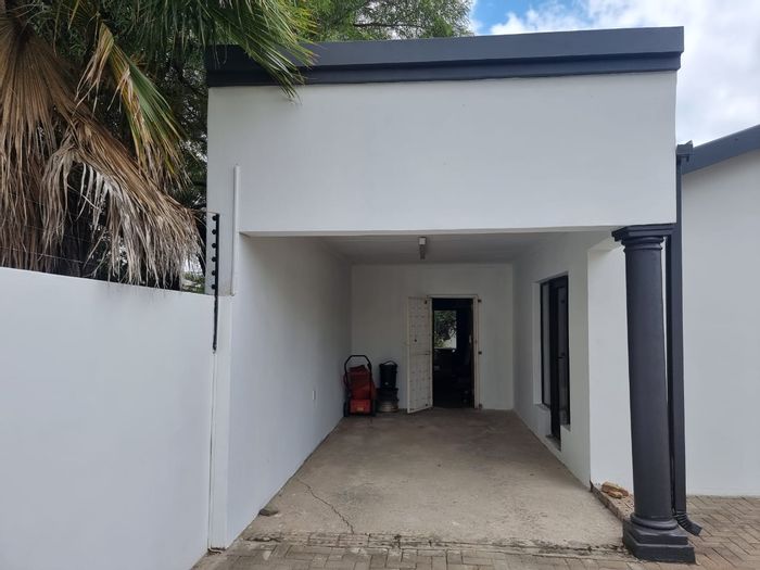 Three-bedroom property with updated kitchen, single garage, pre-paid electricity, minimal garden maintenance, and tiled floors. Contact for viewing.