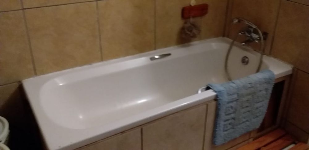 The property features two houses and one flat, offering ample space for a large family or multiple tenants. The main house boasts three bedrooms, two bathrooms, and a generously sized sitting and dining area. It is uniquely equipped with two kitchens, one of which is particularly large, providing abundant space for culinary pursuits or conversion into additional living quarters. A distinctive feature of the main house is the expansive area that once served as a stoop complete with a braai, perfect for entertainment or simply relaxing. Additionally, there is a small private braai area outside for more intimate gatherings.