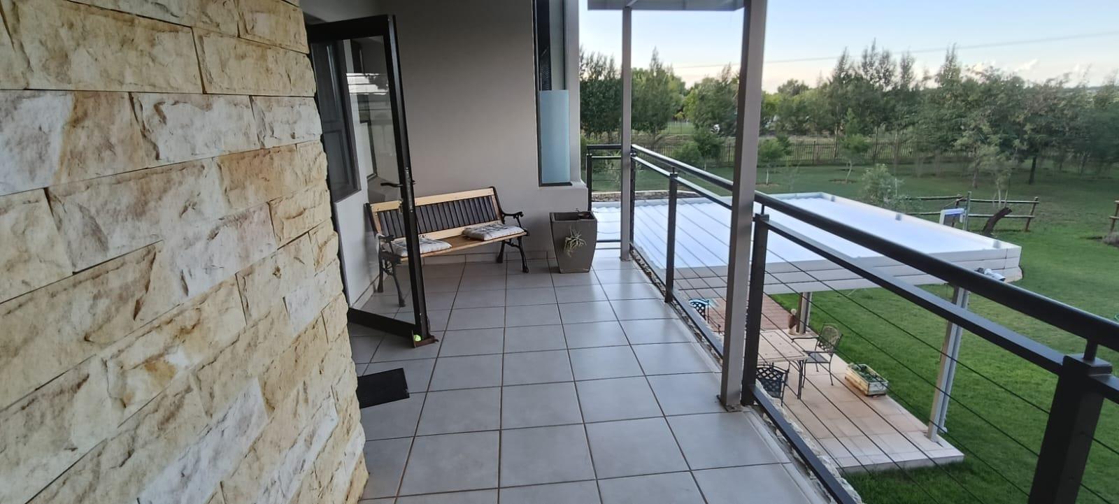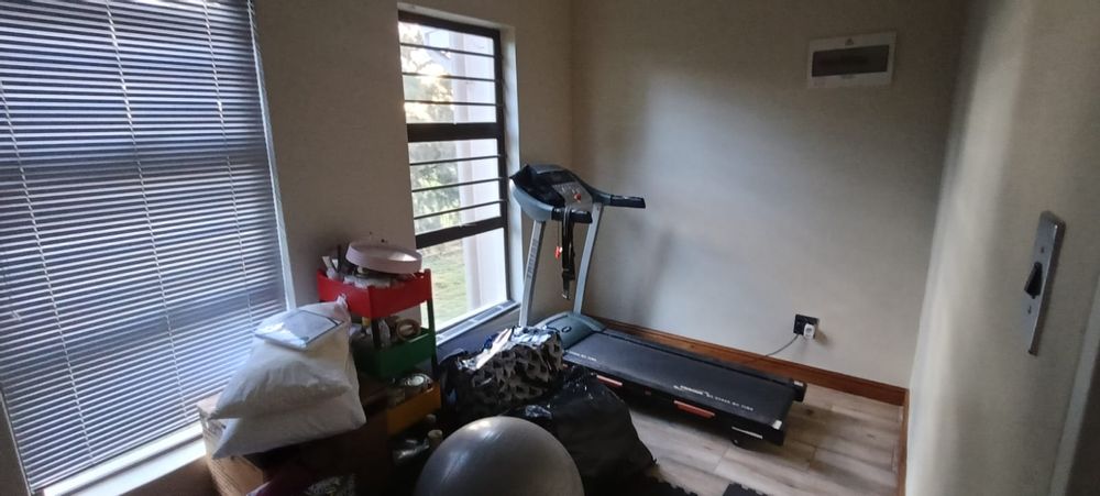 This magnificent house boasts three large bedrooms, each equipped with more than enough beautiful clothing cupboards. The spacious main bedroom is truly a state-of-the-art retreat, featuring a very large bathroom, extensive cupboards, and a small office ideal for administrative tasks. Additionally, there is an extra room fitted with fitness equipment that can be easily transformed into a fourth bedroom if desired. All bedrooms are located upstairs and open onto balconies where you can enjoy your morning coffee while taking in the serene surroundings.