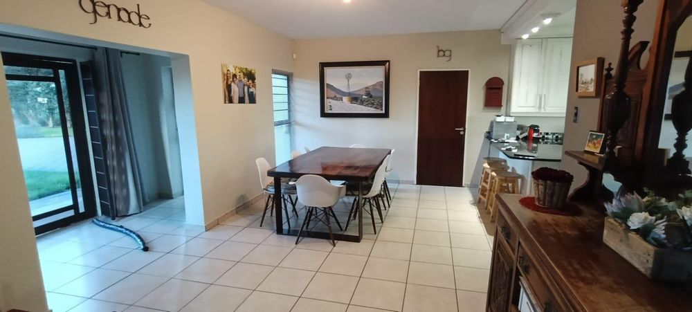 Your safety and peace of mind are paramount in this property. Equipped with 10 security cameras, ample spotlighting, and a security company on call, you can relax knowing your home is well-protected. The strong borehole feeds into a large 10,000-liter water tank ensuring ample water supply. A wooden house is available on the property for staff accommodation.