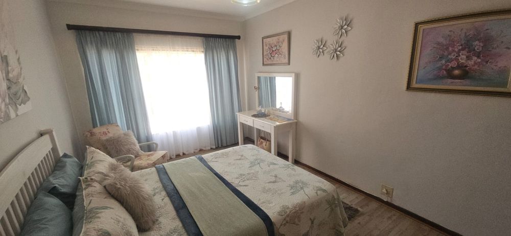 Additional features include a double garage and a carport, providing plenty of parking space for residents and guests alike. The private garden is equipped with a sprinkler system, offering a lush outdoor retreat without the hassle. The fully walled property comes with burglar bars for added security, ensuring peace of mind for you and your loved ones.
