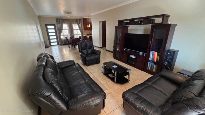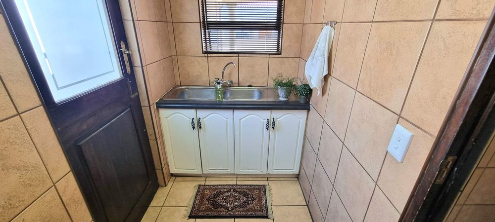 The home features a spacious open-plan design, with the kitchen flowing effortlessly into the dining and lounge areas—ideal for modern living and entertaining. The well-appointed kitchen boasts ample cupboard space, a large separate scullery and laundry area (with a door separating it from the main kitchen), and a generous pantry cupboard for groceries and additional storage.