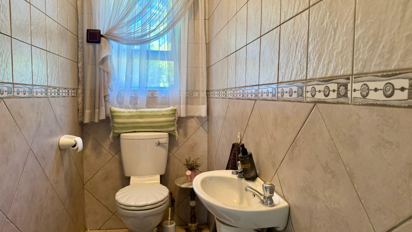 The property is equipped with a triple garage that includes an outside toilet and storeroom, offering ample storage and utility space. The beautifully landscaped garden features an irrigation system and a sparkling swimming pool, creating a serene outdoor oasis. A JoJo tank with a pump provides reliable water backup for peace of mind. Security is paramount with a full system that includes an alarm, CCTV, and electric fencing, ensuring the safety of your loved ones. The property is fully fenced, providing added privacy and tranquility.