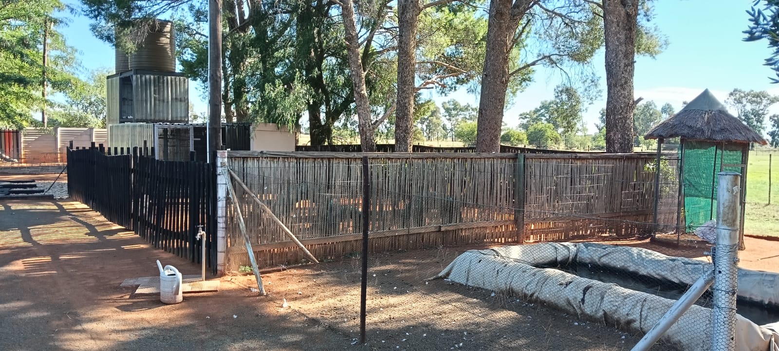 Spread across the well-fenced property are five designated farming camps, ideal for diverse agricultural pursuits. The estate is equipped with five open roof parking spaces for staff vehicles and well-constructed kraals and overnight camps for animals. Additionally, the property features a brick dam near the house that doubles as a refreshing swimming pool.