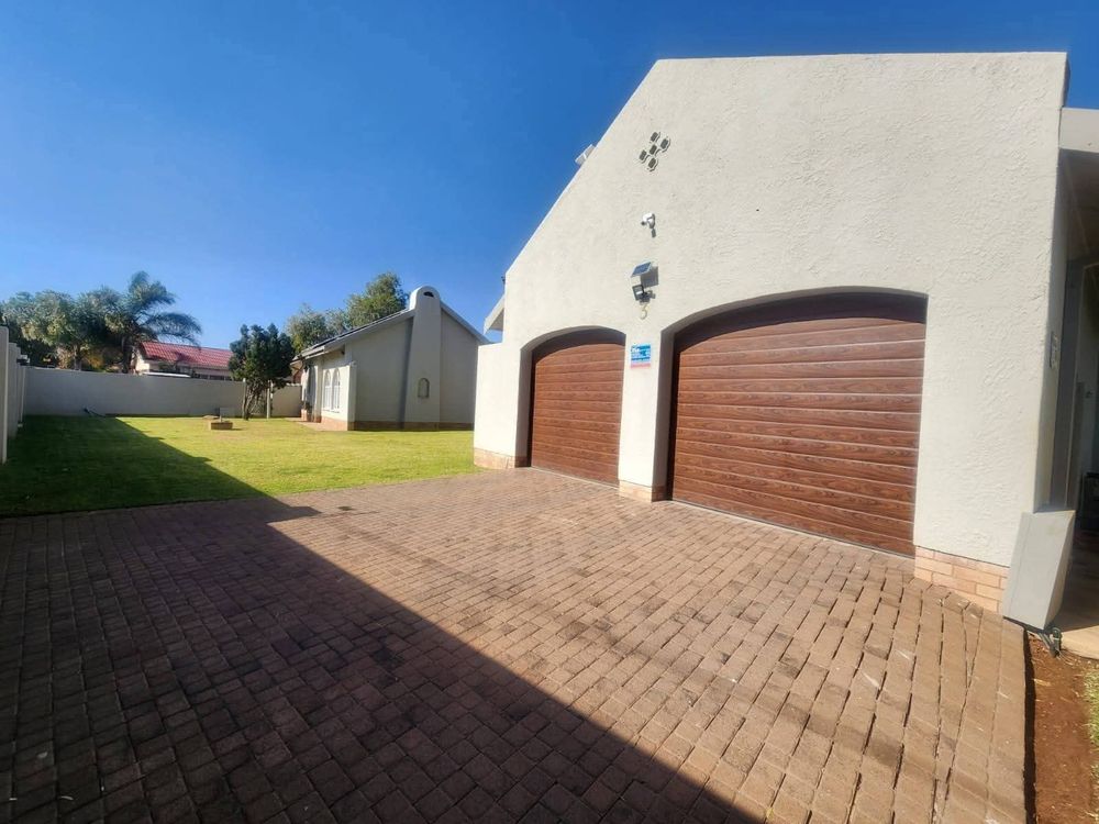 The heart of the home features a fitted kitchen with sleek granite countertops and a separate scullery area, designed to meet all your culinary needs. The living areas seamlessly transition onto a covered patio, an excellent spot for weekend braais or relaxed afternoons overlooking the sparkling swimming pool.
