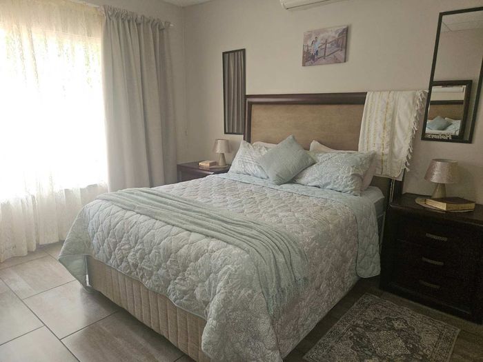 Three bedrooms, 2.5 bathrooms, double garage, enclosed garden with braai area. Secure property with ample storage and parking.