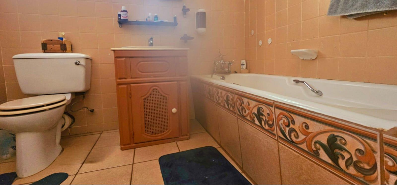 The kitchen is a chef’s dream, equipped with abundant cupboard space, a separate laundry area, and a scullery. Convenience is further enhanced with two well-appointed bathrooms and a separate guest toilet.