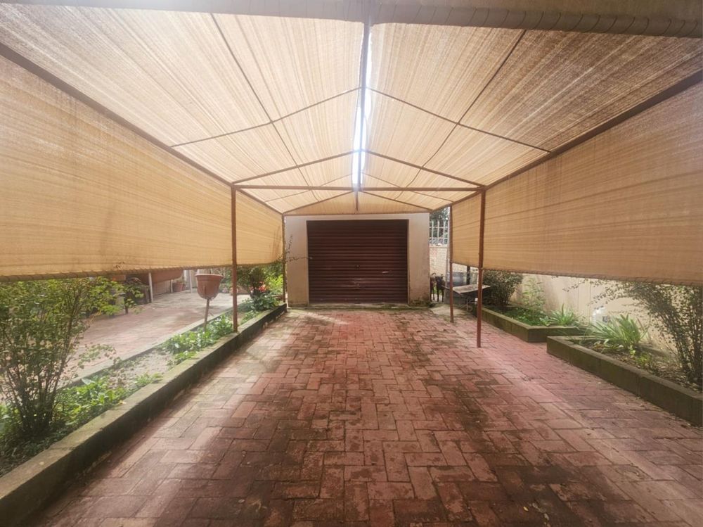 The practical layout extends to the back of the property, where the entrance gate leads to a carport accommodating two vehicles parked in tandem, as well as a single garage. Additionally, a storeroom behind the garage includes a toilet and basin, which could be easily transformed into staff accommodation with minimal effort.