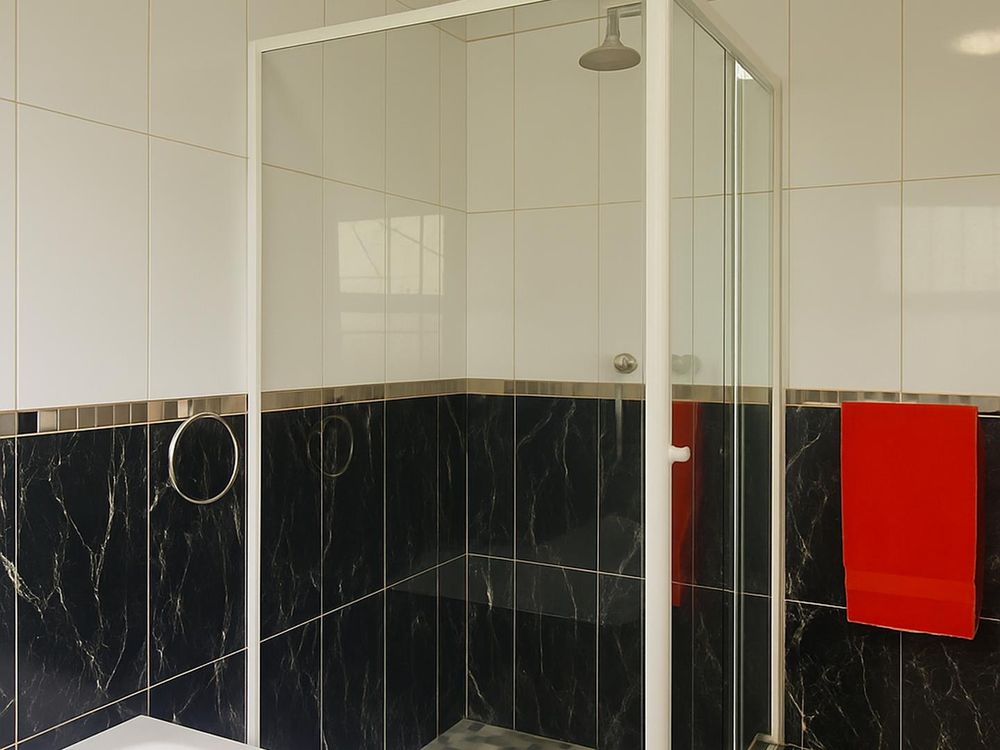 2 Bathrooms – guest bathroom with shower, basin & toilet; main en-suite with shower, bath, double basin & toilet