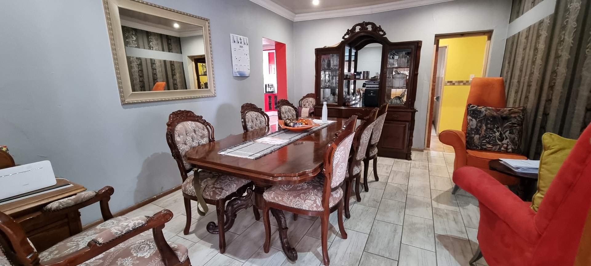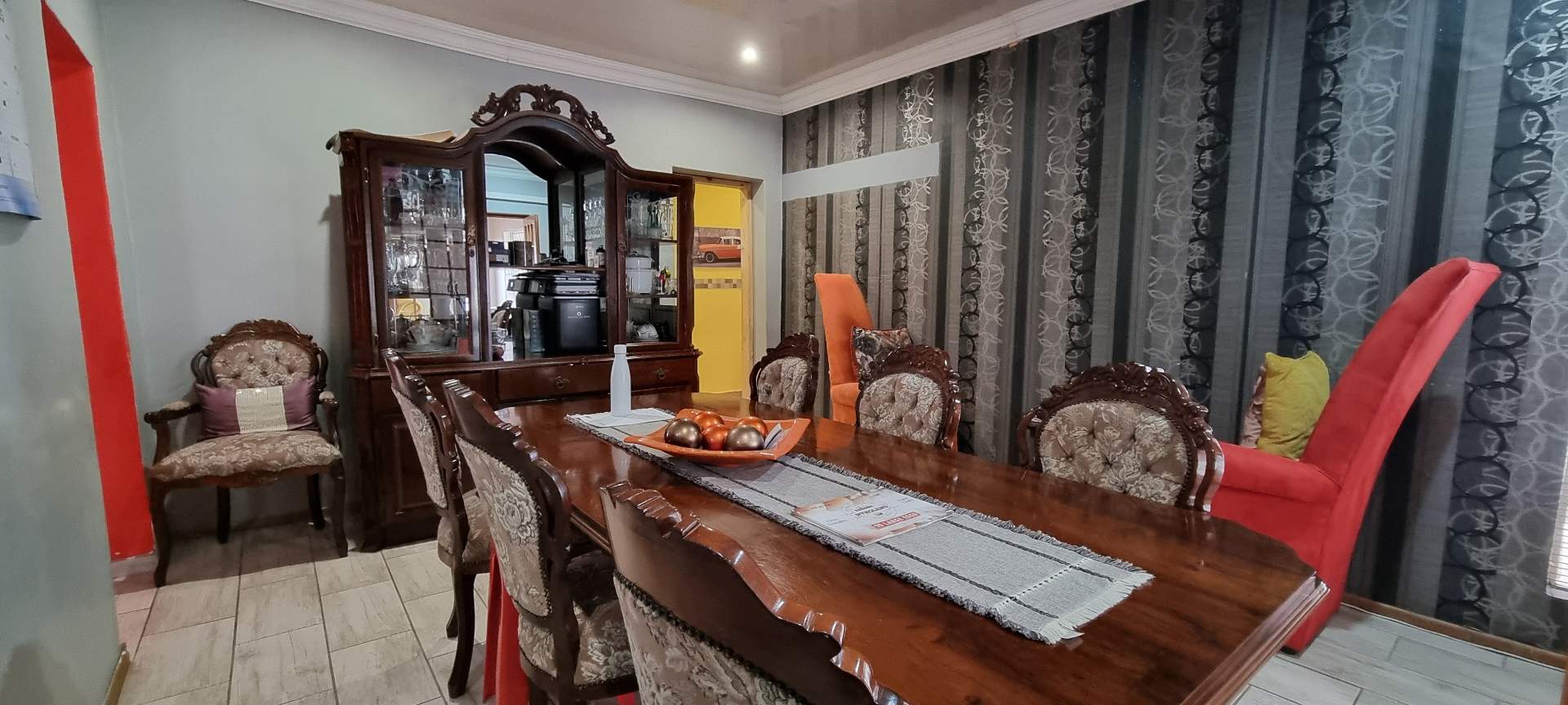 Each of the three generously sized bedrooms is fitted with brand-new, beautifully designed built-in cupboards, offering both style and ample storage space. The home features two inviting living areas – a cozy TV room and a smaller lounge – both of which flow seamlessly into a spacious dining room, creating an ideal space for family gatherings and entertaining.