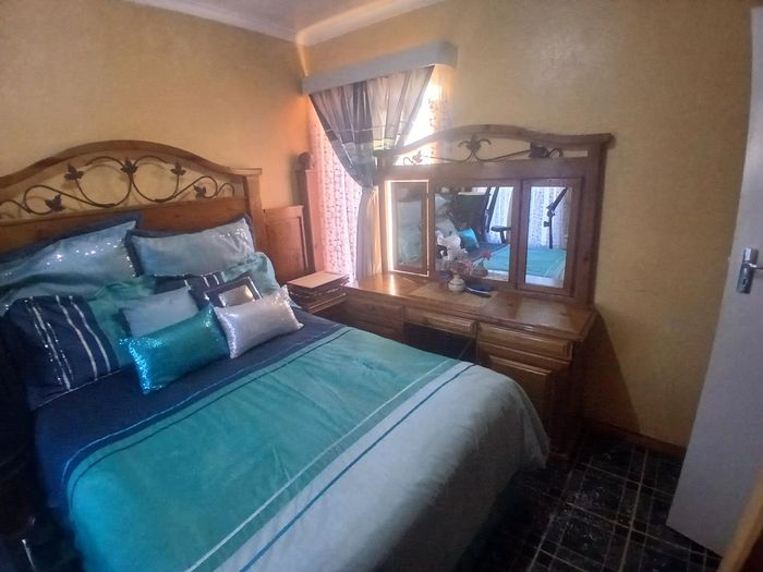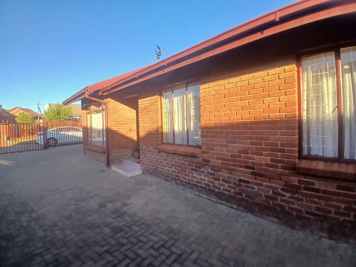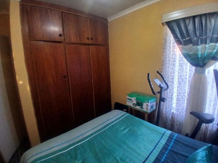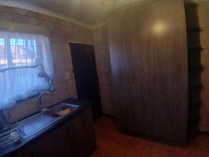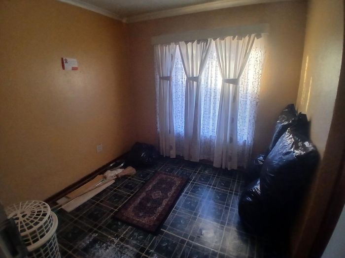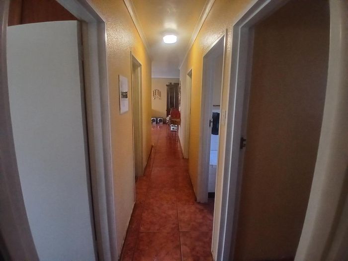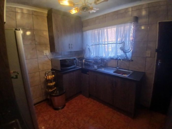 Three-bedroom property with updated kitchen, single garage, pre-paid electricity, minimal garden maintenance, and tiled floors. Contact for viewing.