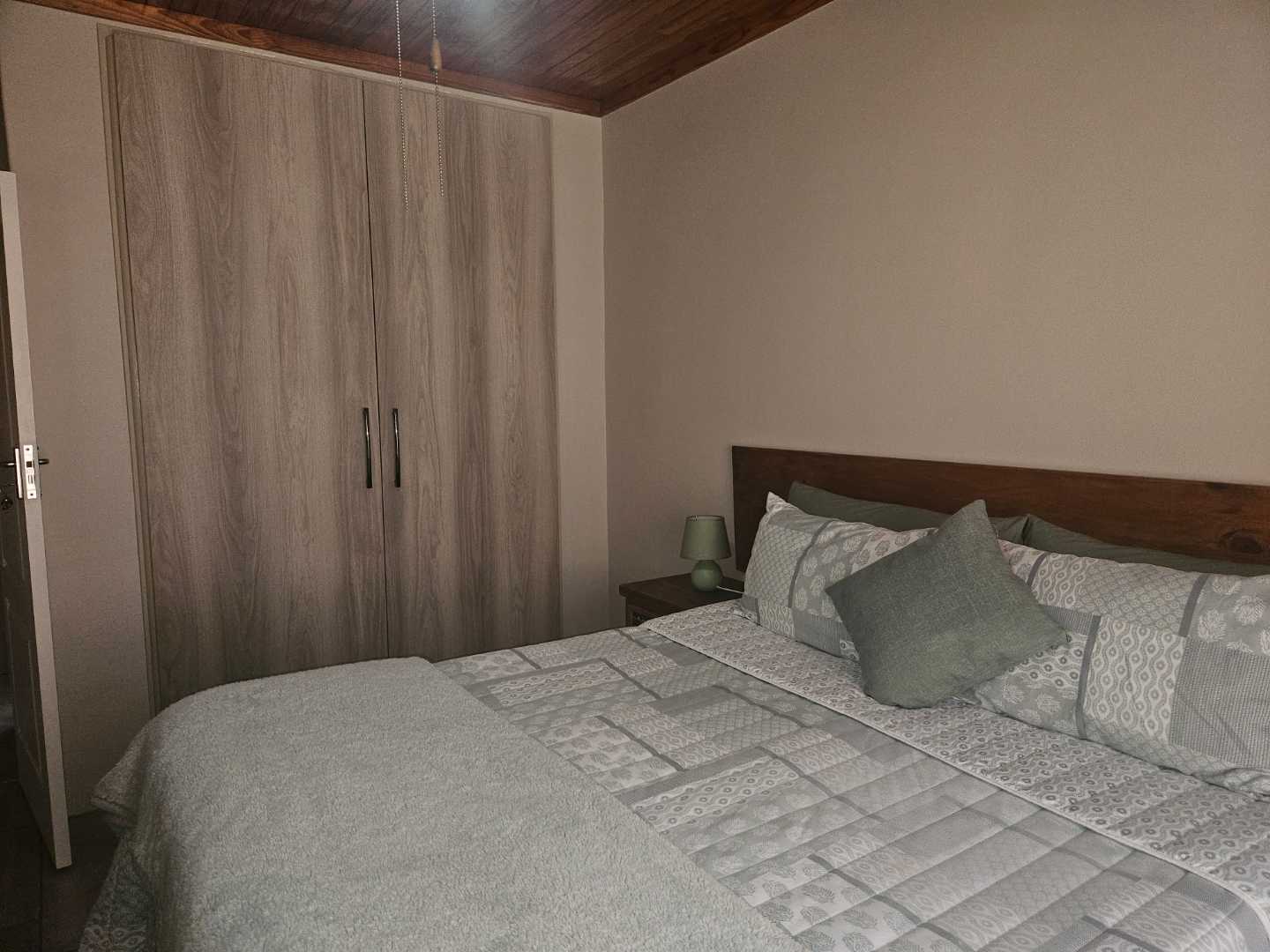 Designed for entertainment, the covered patio includes a built-in braai, perfect for hosting gatherings with family and friends. The immaculate garden is a testament to meticulous care, featuring an efficient irrigation system to maintain its lush appearance. A 2,400L JoJo tank further supports water usage, ensuring sustainability. For added convenience, there is an outside toilet available.