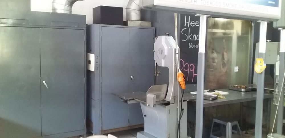The butchery is equipped with two cool rooms, one measuring 20 square meters and the other 4 square meters, providing ample storage space for your products. It also features a display cooler, a 52-inch mincer, two large meat saws, a 45 kg hydraulic sausage filler, a tenderizer, a cash register, a large vacuum machine, and three scales. Additionally, it includes all the necessary knives for deboning and two biltong dryers, ensuring you have all the tools needed to continue seamless operations.The butchery specialized in a wide range of meatproducts.