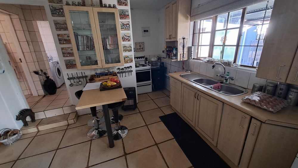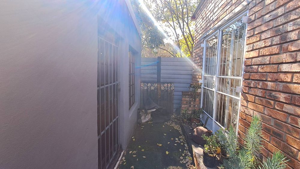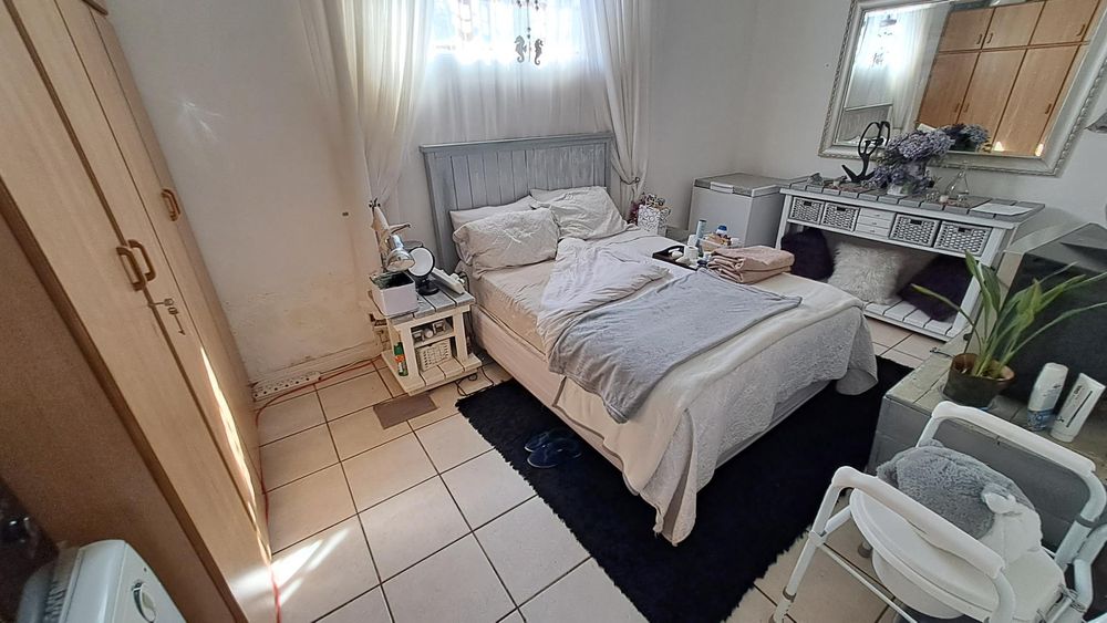 As you drive through the secure, electric gate, you can park your vehicle in the safety of your own back yard. The main house consists of three spacious bedrooms with ample built-in cupboards. The enormous main bedroom is fitted with an en-suite full bathroom. The remaining two rooms are spaciousness personified. One of the rooms has been converted to serve as a bachelor's/granny flat with its own en-suite bathroom and open plan kitchenette, with its own entrance from the back door. The third room is also fitted with ample built-in cupboards and can easily fit a king size bed.