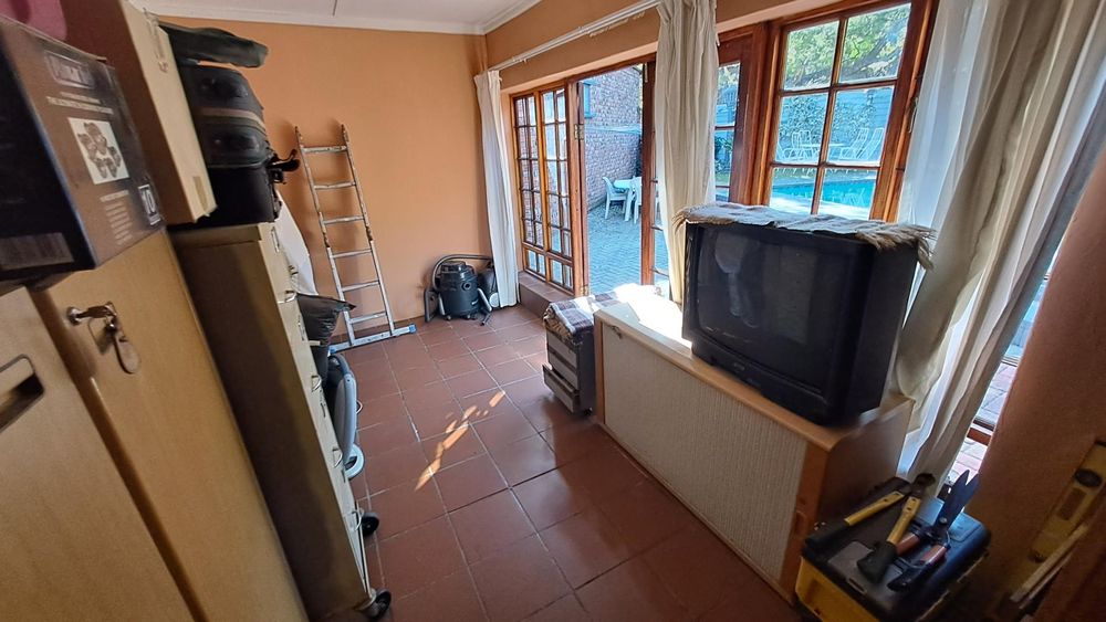 Also leading from the corridor is a room to the east which has a door leading out to the swimming pool and braai area. This room can easily be converted into another bedroom or bachelor's if considering a rental income. The sparkling pool and its pump are situated on the northeast of the property, and a small wendy house as storage unit is also included in the sale.
